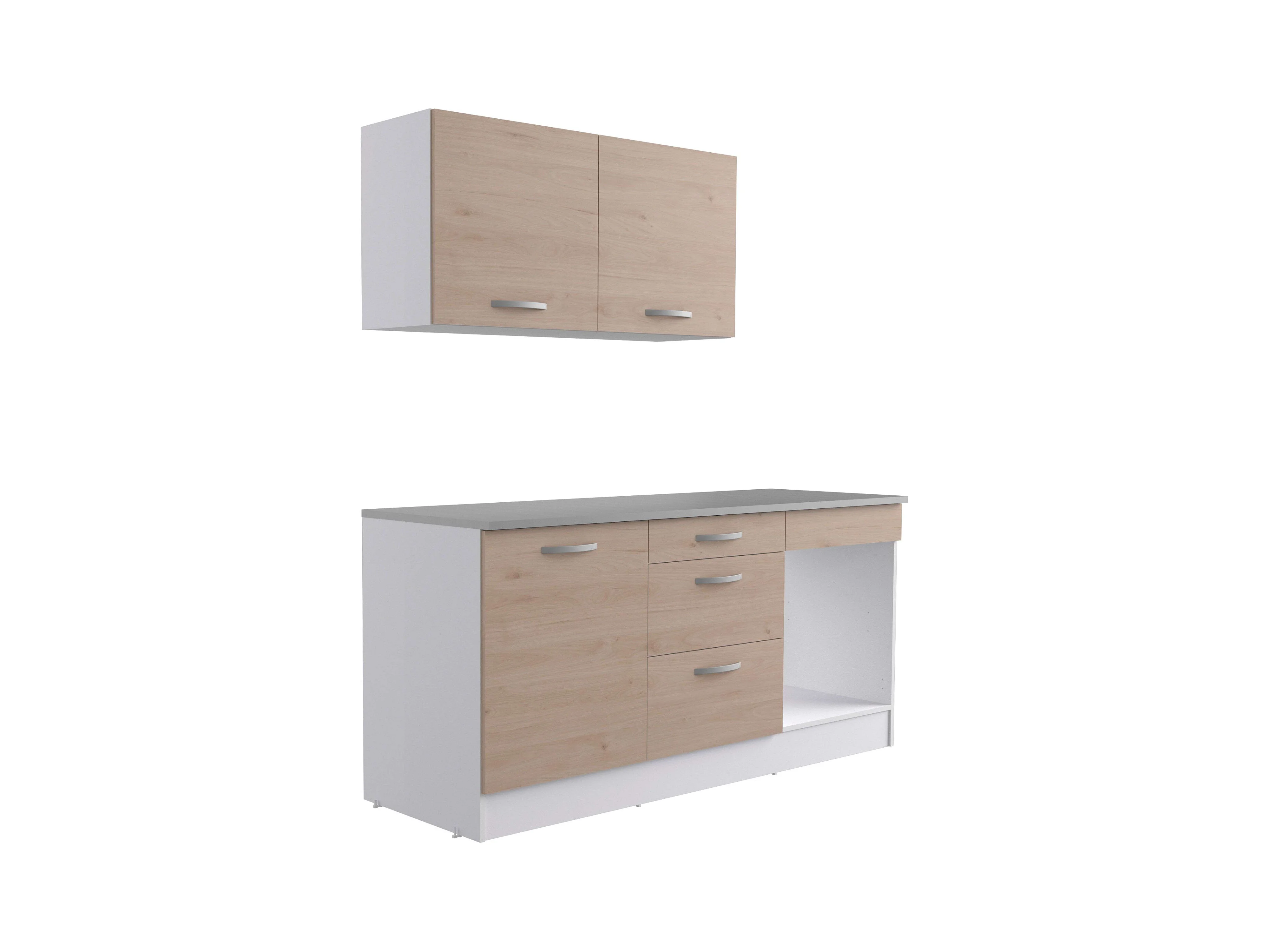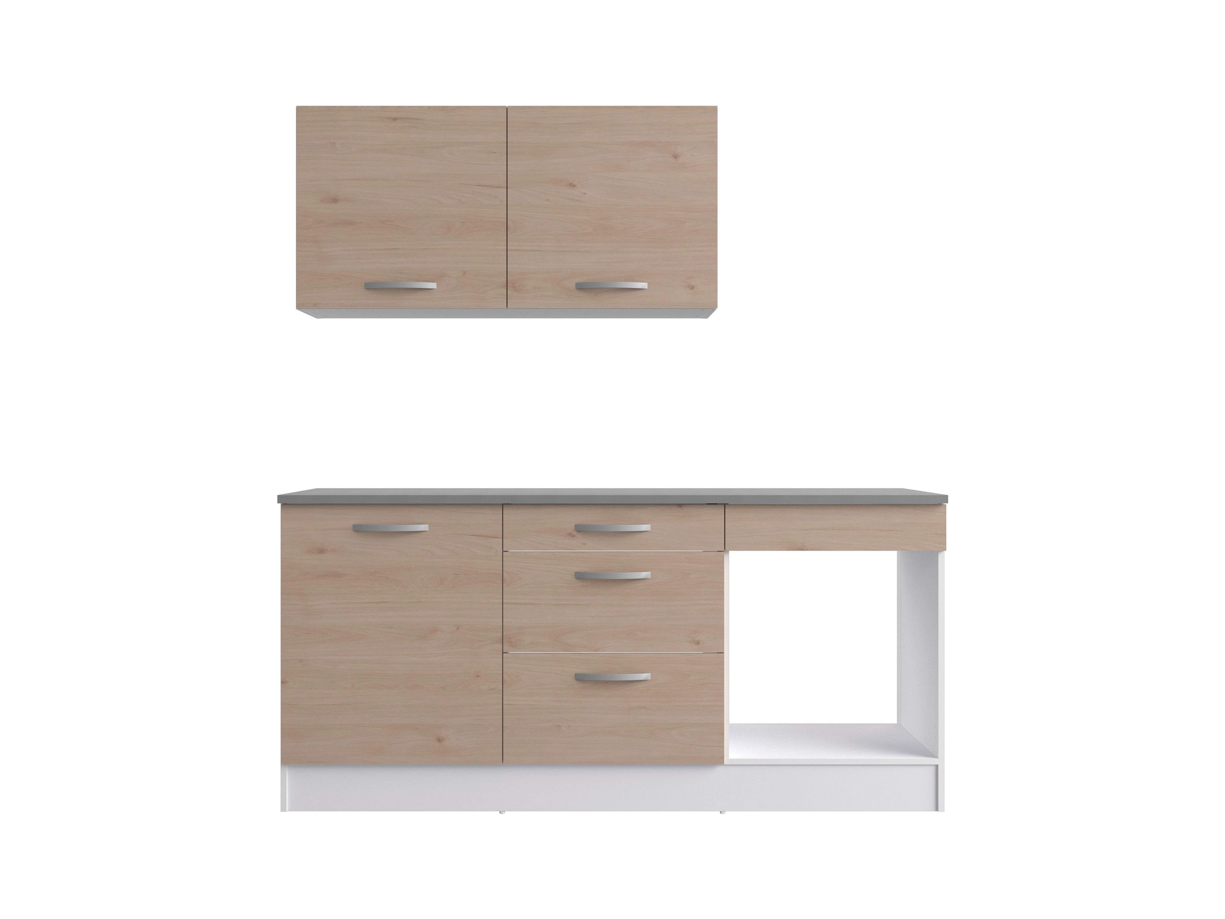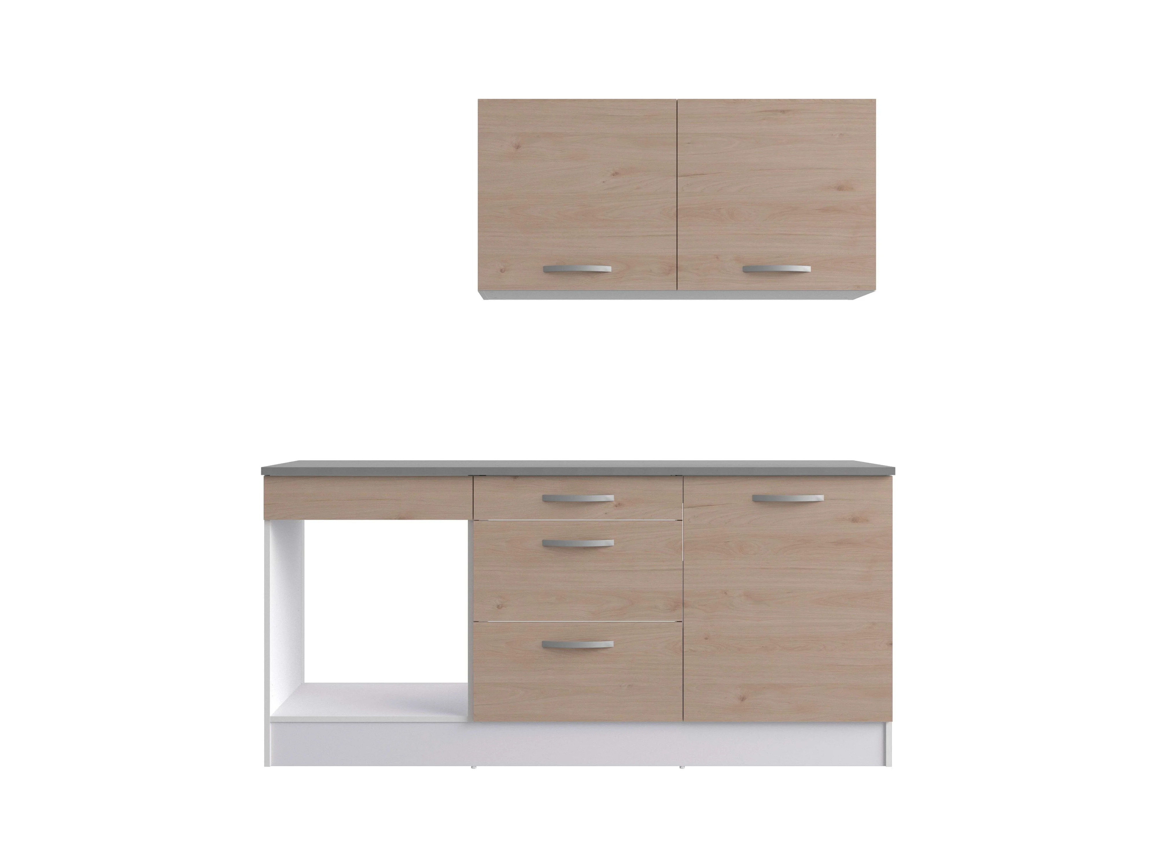 Unidad de cocina 160x84x60 cm aspecto madera roble blanco y gris