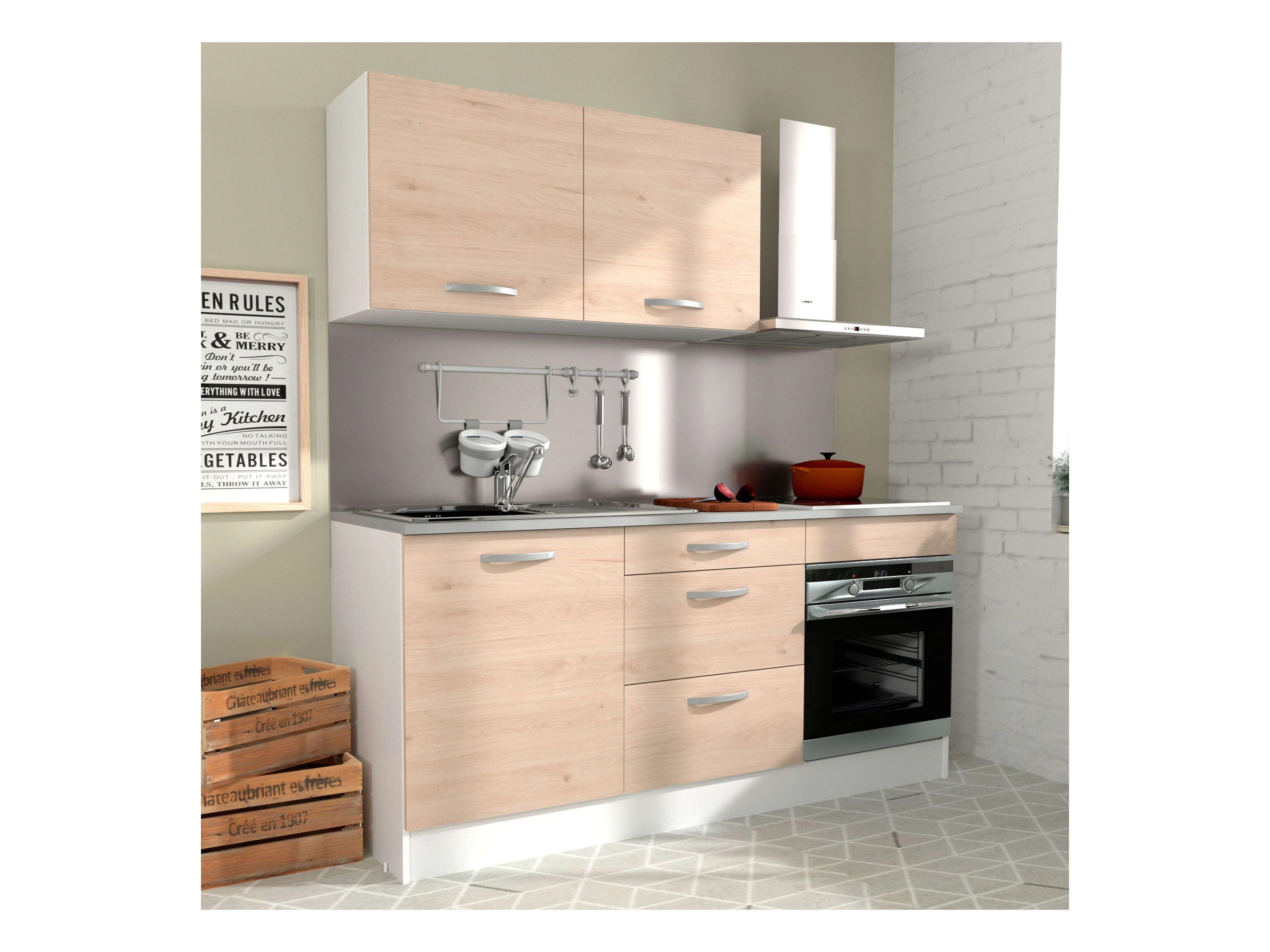 Unidad de cocina 200x84x60 cm aspecto madera roble blanco y gris
