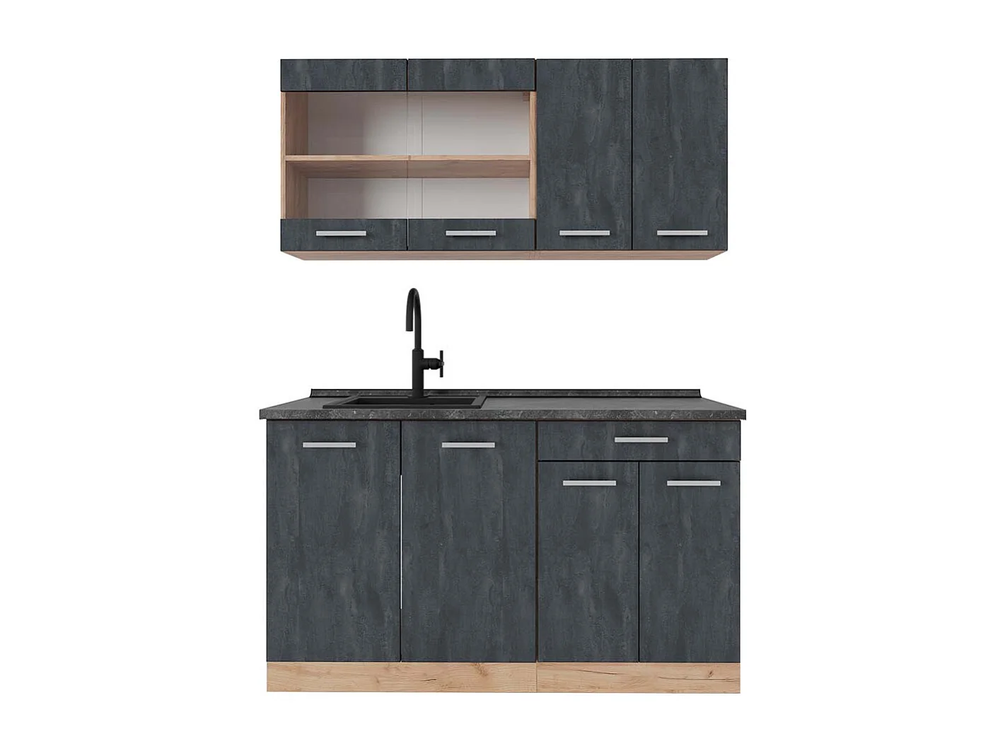 Cocina versátil hormigón negro/roble dorado 140x60x81.6 r-line