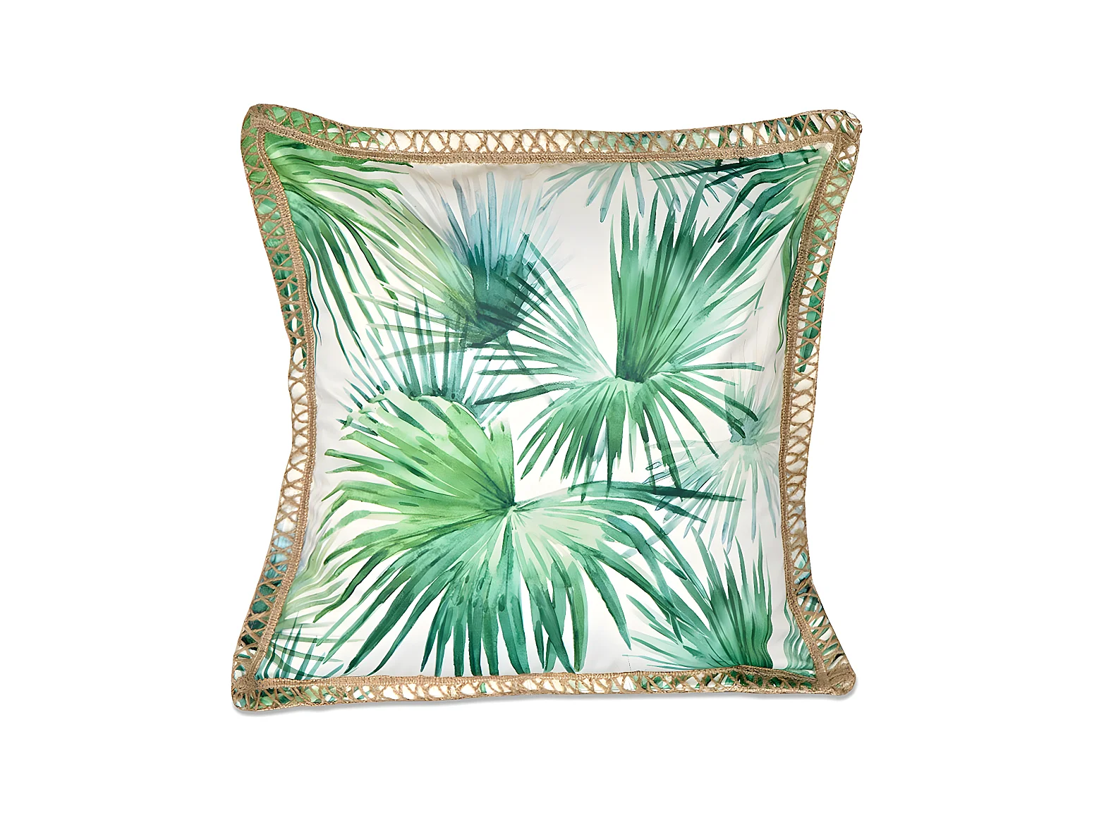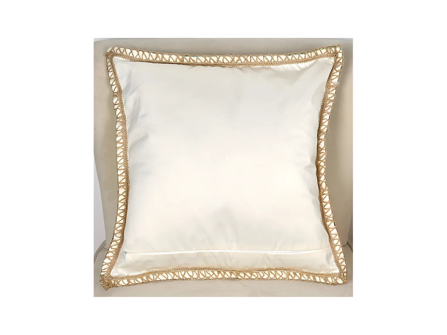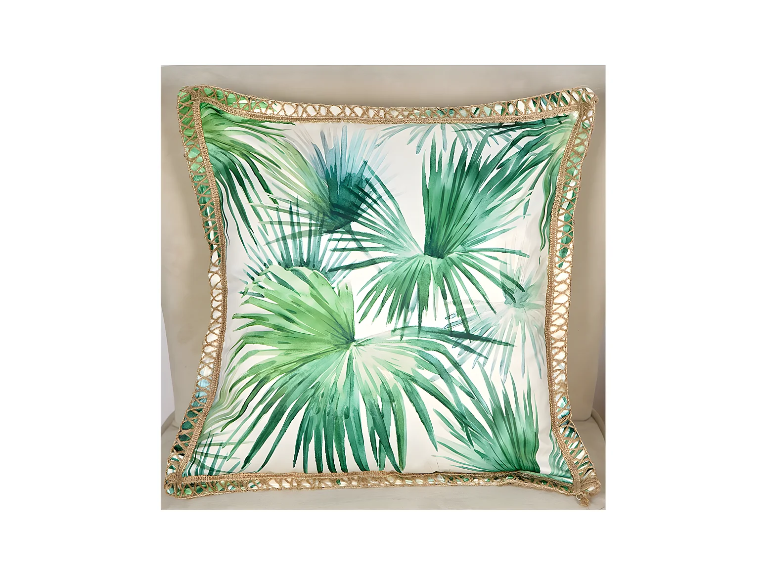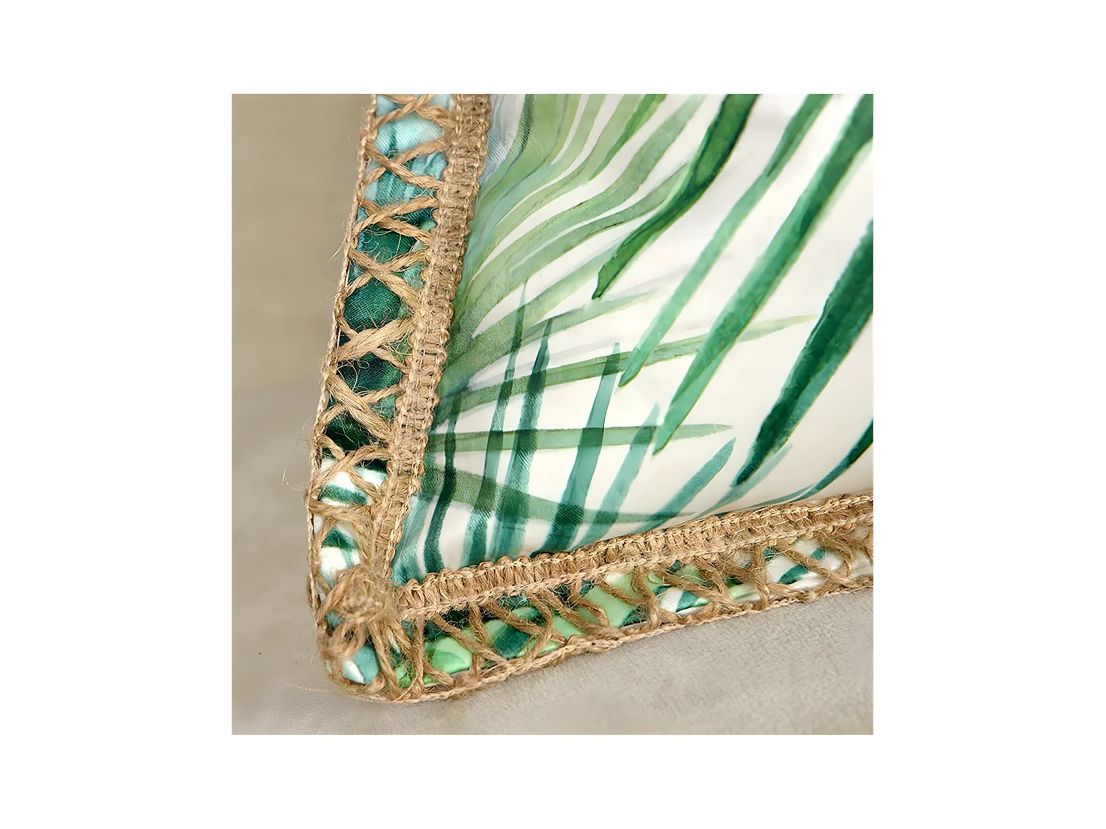 Cojin 45*45 ramas verdes tipo seda flecos yute con relleno 400 gr yute