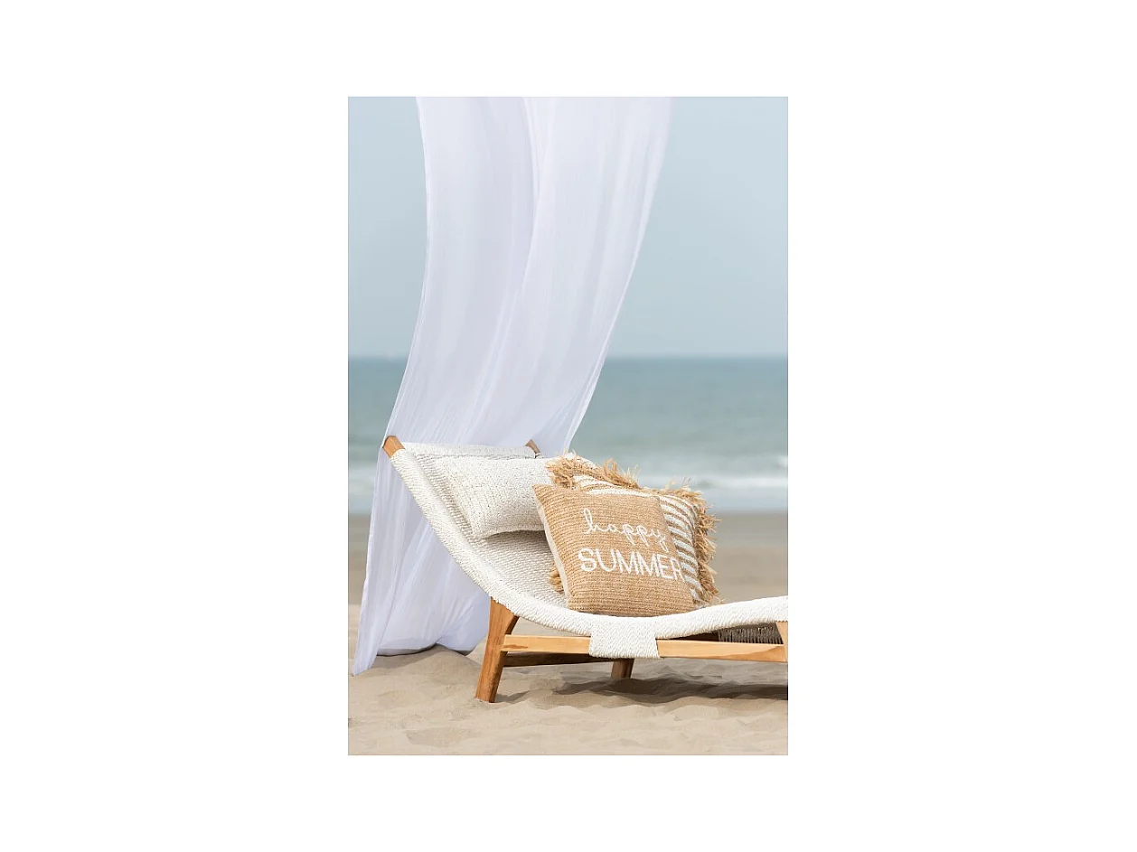 Cojín a rayas con flecos en textil blanco 45x45x15 cm