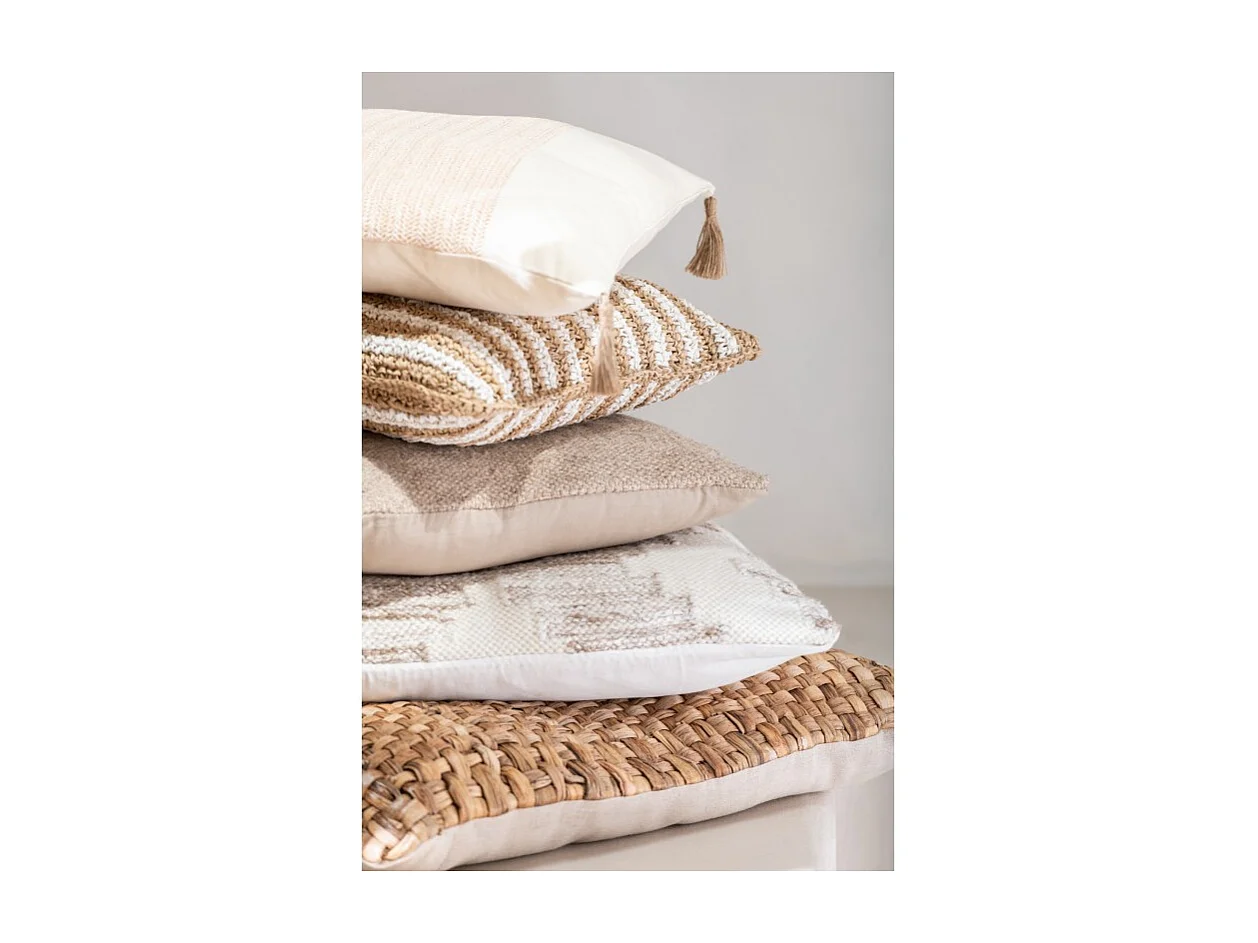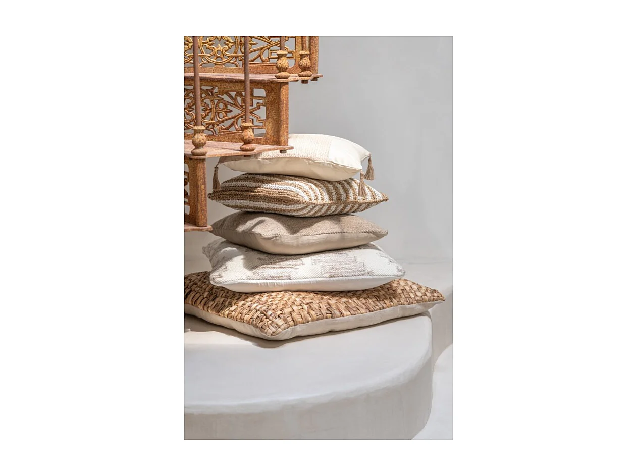 Cojín a rayas con flecos en textil blanco 45x45x15 cm