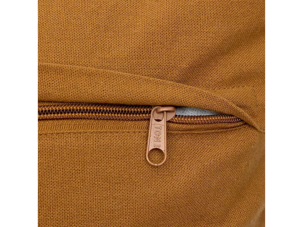 Cojín redondo con encaje de algodón ocre de 38x38cm