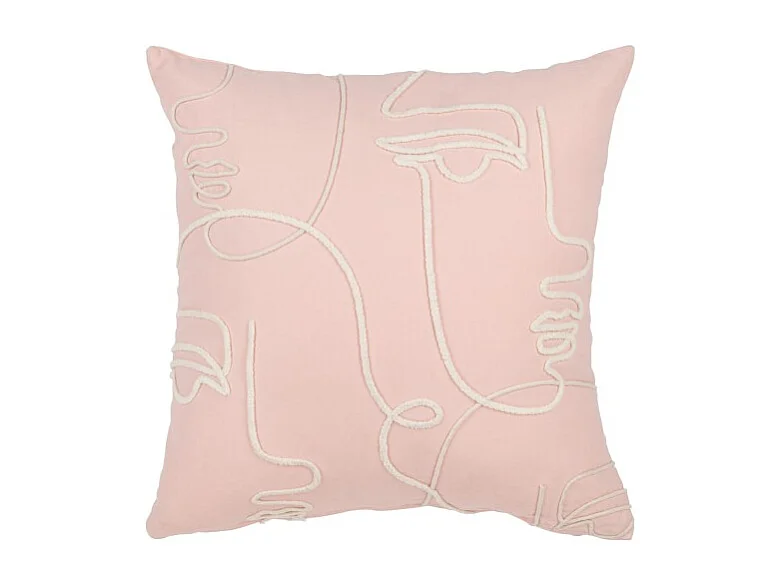 Cojín caras abstractas de algodón rosa 45x45x15 cm