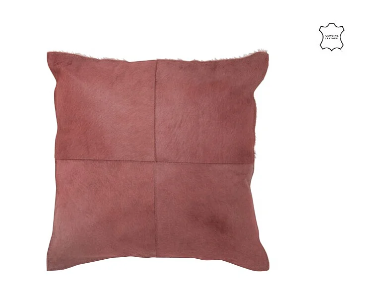Cojín con pompones de cuero rojo 45x45x8 cm