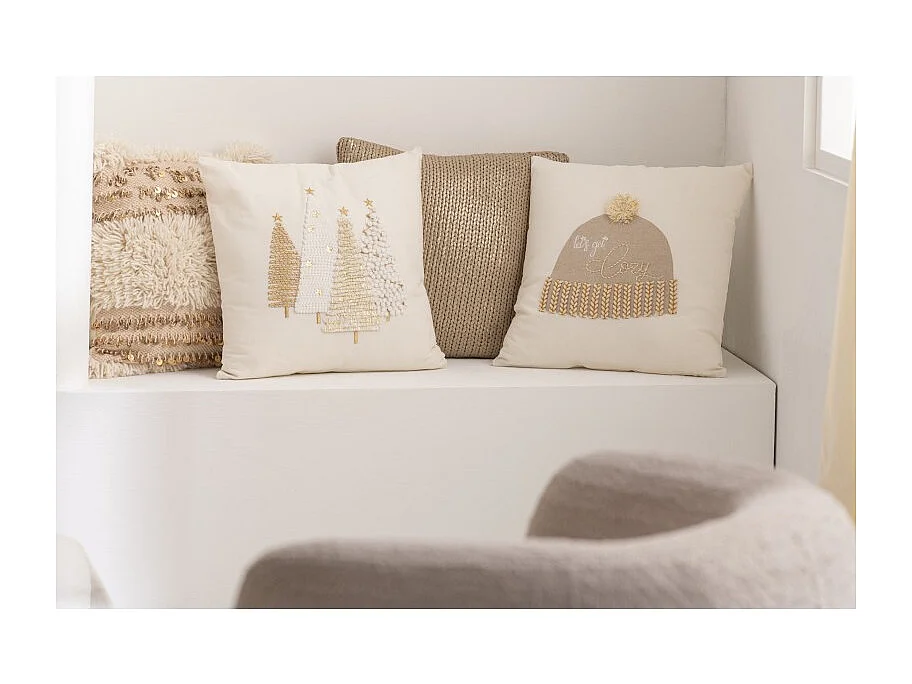 Cojín cuadrado en algodón beige 50x50x12 cm