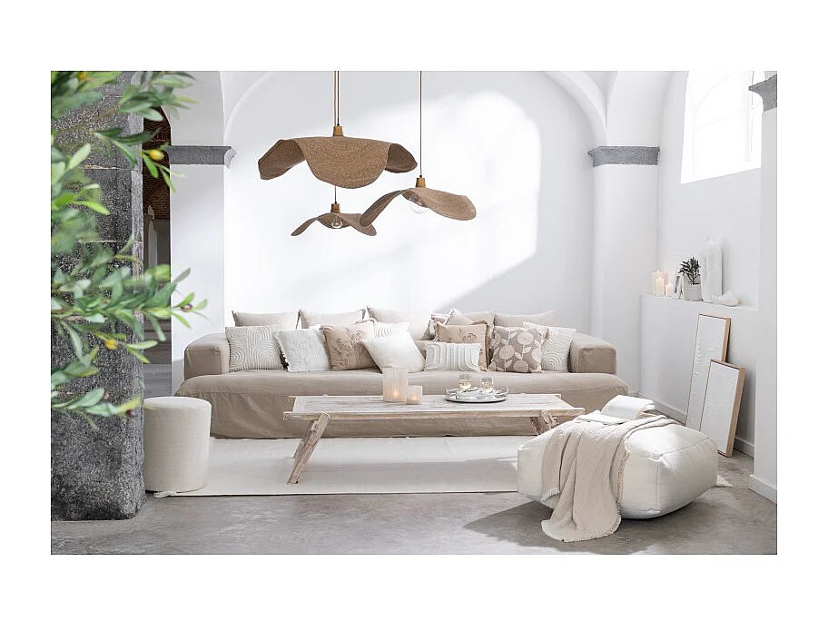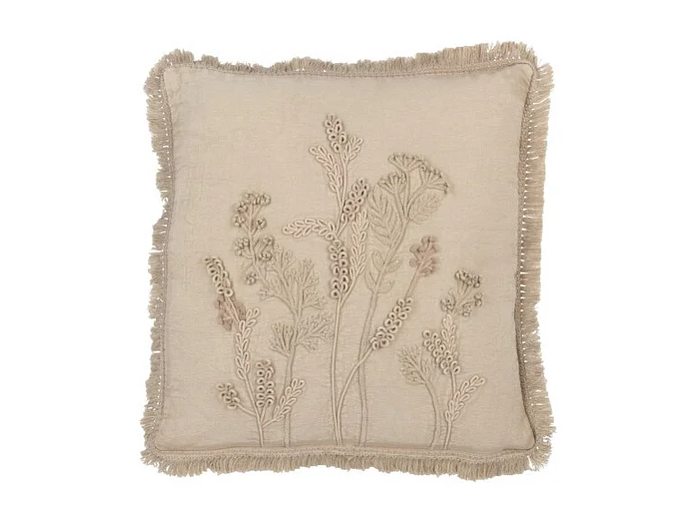 Cojín flores/hojas en algodón/lino/poliéster gris 45x45x15 cm