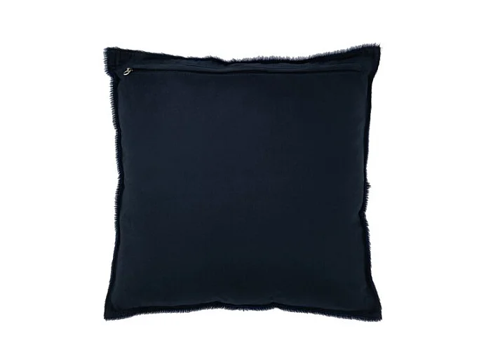 Cojín tejido semi-liso con flecos en algodón/lino/poliéster azul 45x45x12 cm