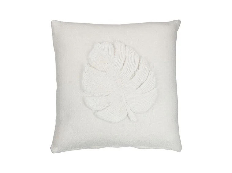 Cojín cuadrado con motivos de hojas en tela blanca 43x43x10 cm.