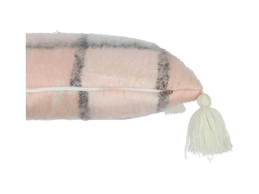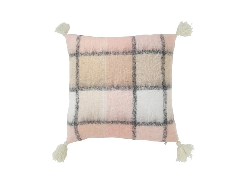 Cojín cuadrado de tela beige y rosa de 45x45x5cm