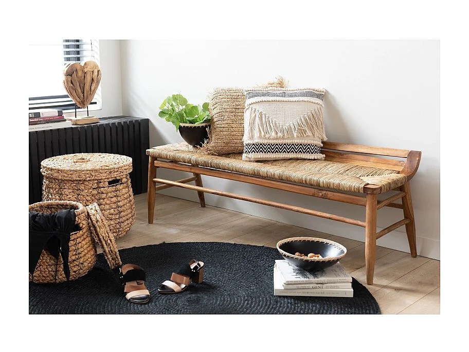 Cojín para sillón silla suela grande en mimbre y bambú estampado beige