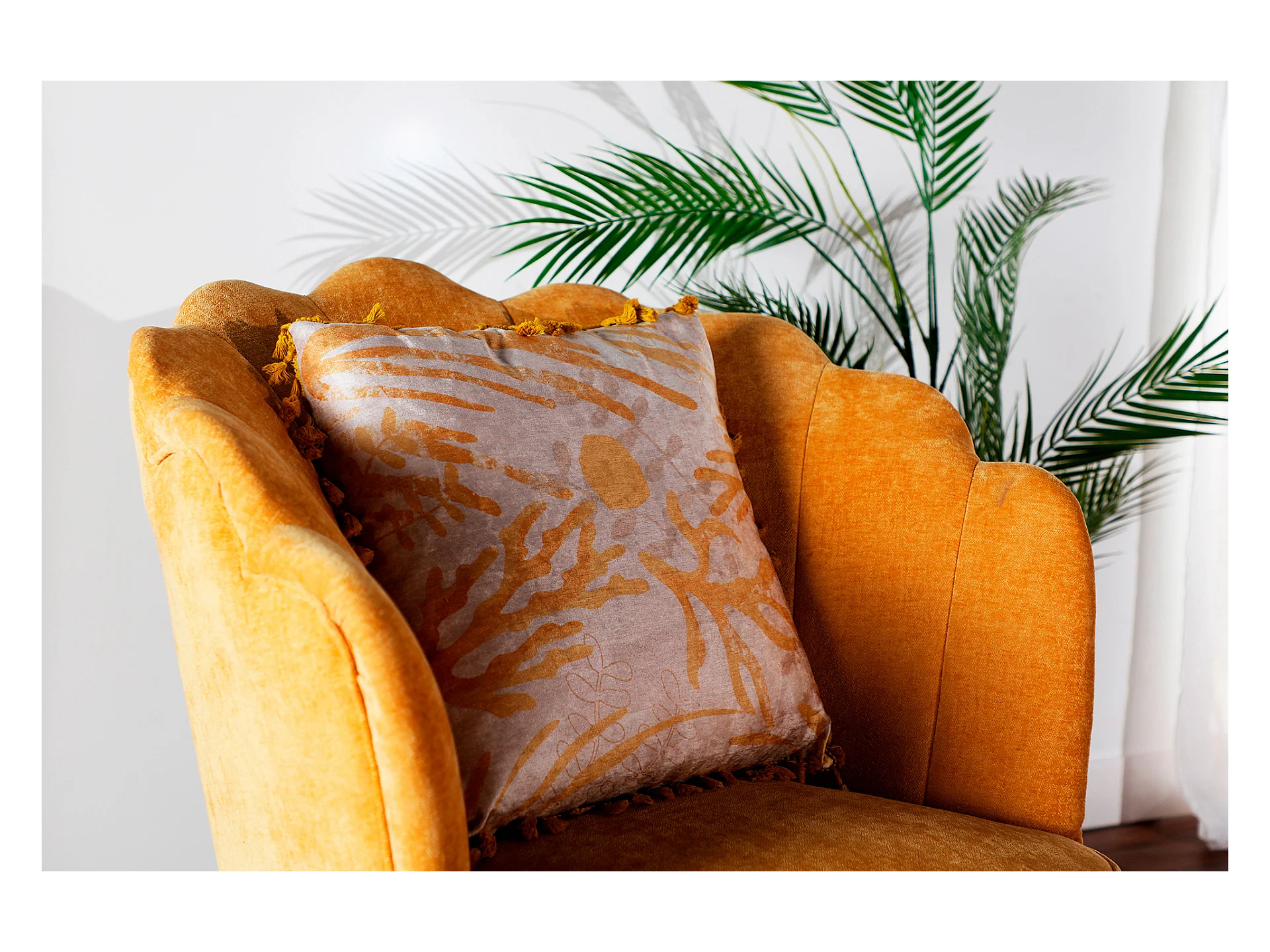 Cojín de chenilla en color crema de 42x42x10cm