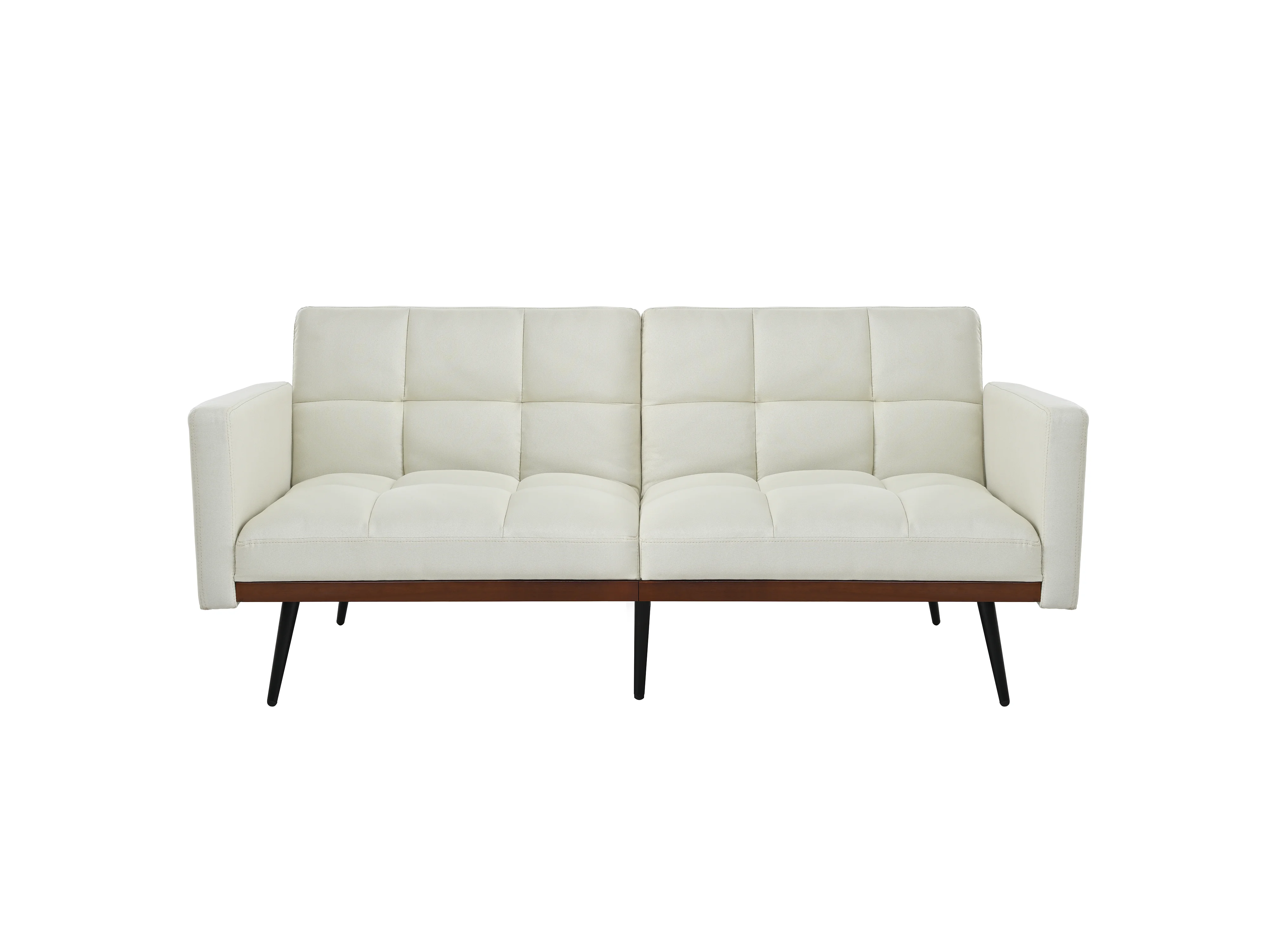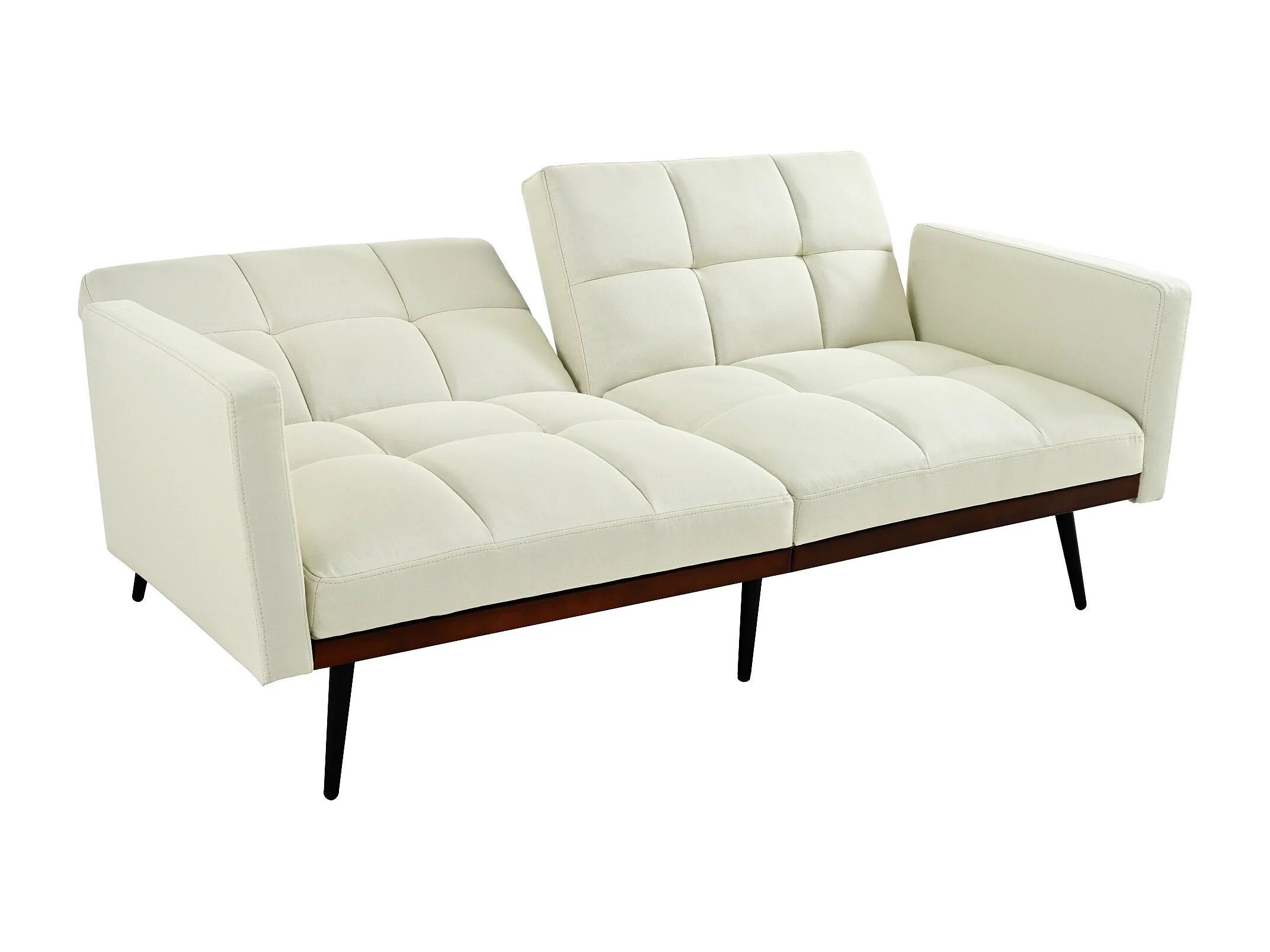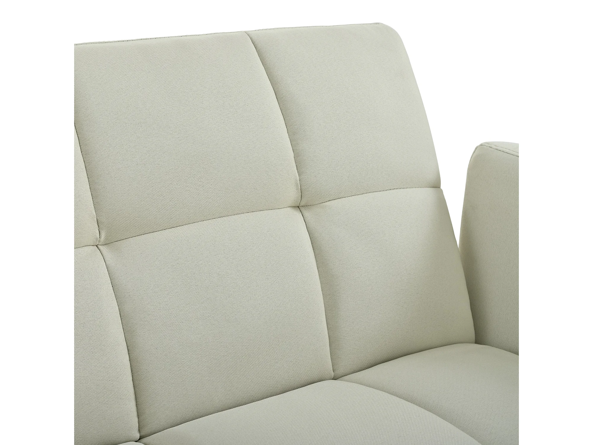 Cojín de sofá de mezcla de lino, ancho 146 cm, con respaldo ajustable en 5 posiciones y reposabrazos fijos, patas de metal, beige