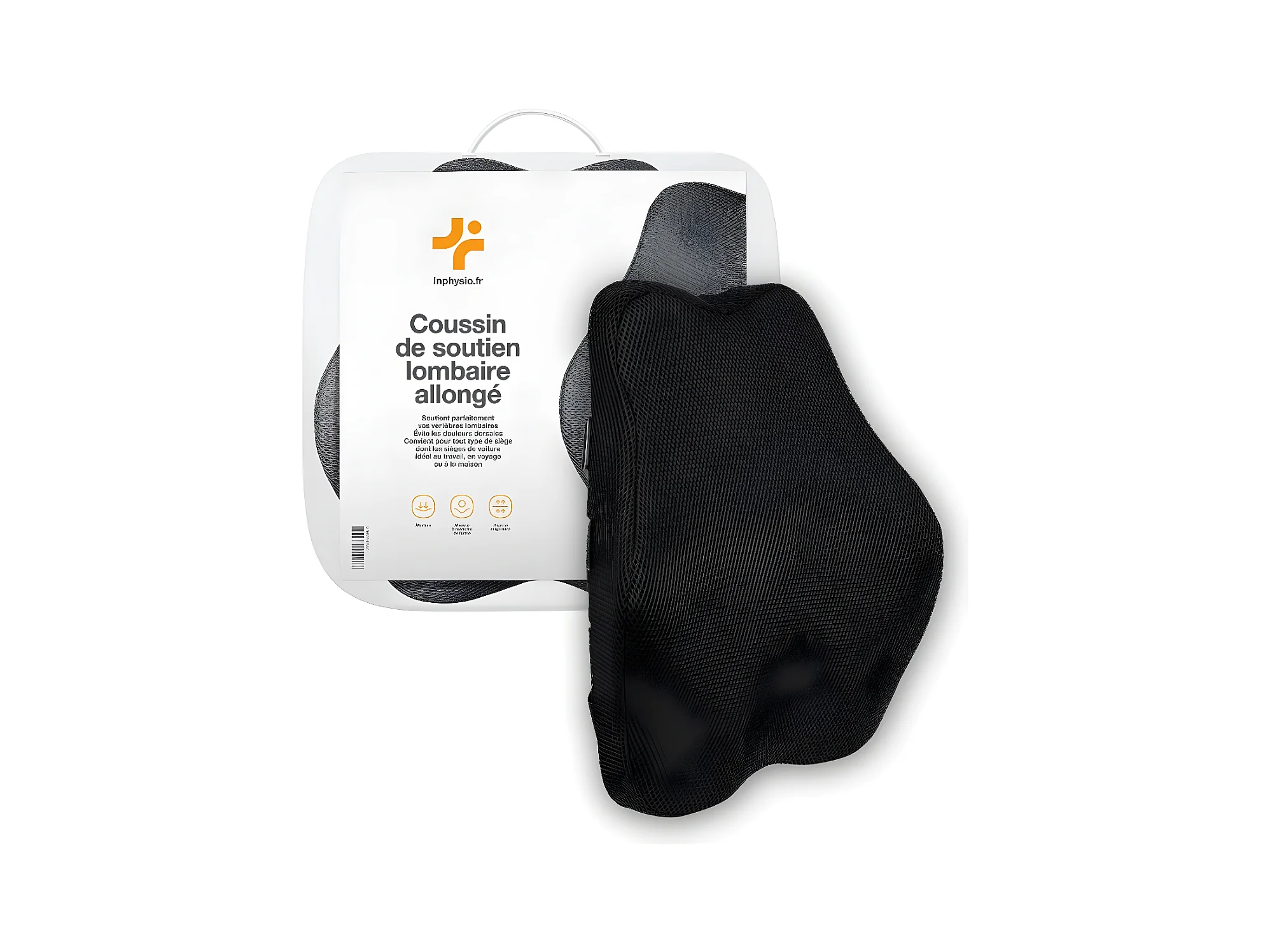 Cojín de Soporte Lumbar Ergonómico Alargado - 45x41x10,5 - espuma con memoria - Correas ajustables - INPHYSIO