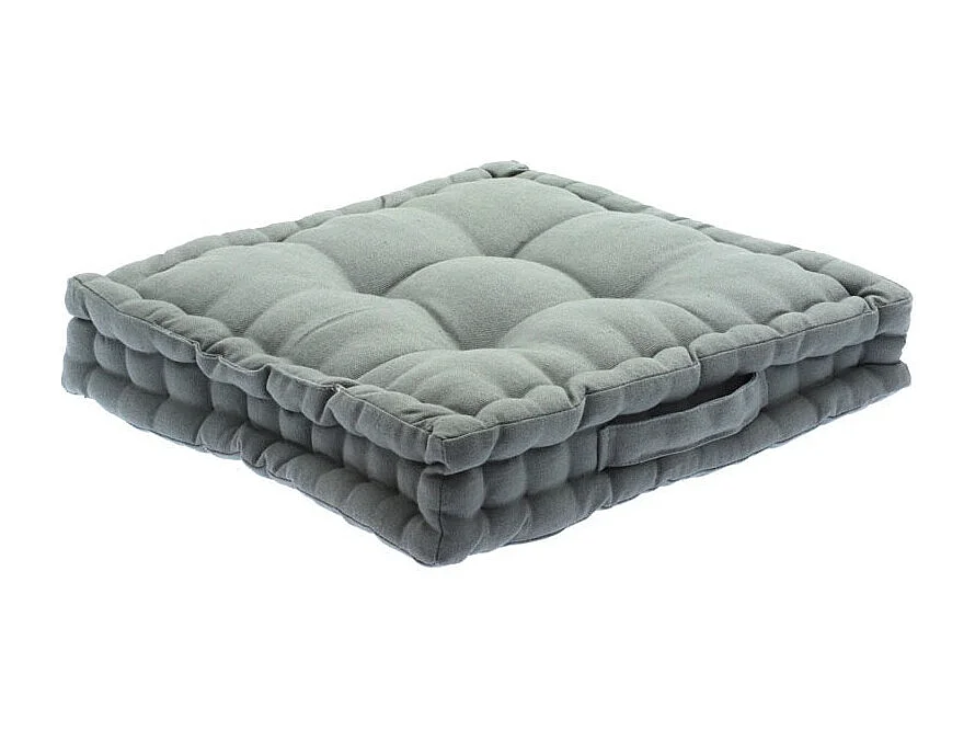 Cojín de Suelo de Algodón Gris Claro 40 x 40 cm con Botones y Asa