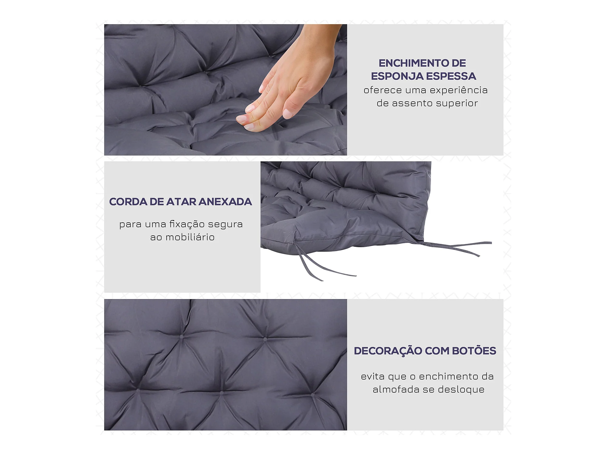 Pack de 2 cojines para silla Outsunny con cordones gris 8x50x98 cm