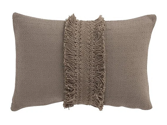 Cojín rectangular con flecos de algodón color topo 43x28cm