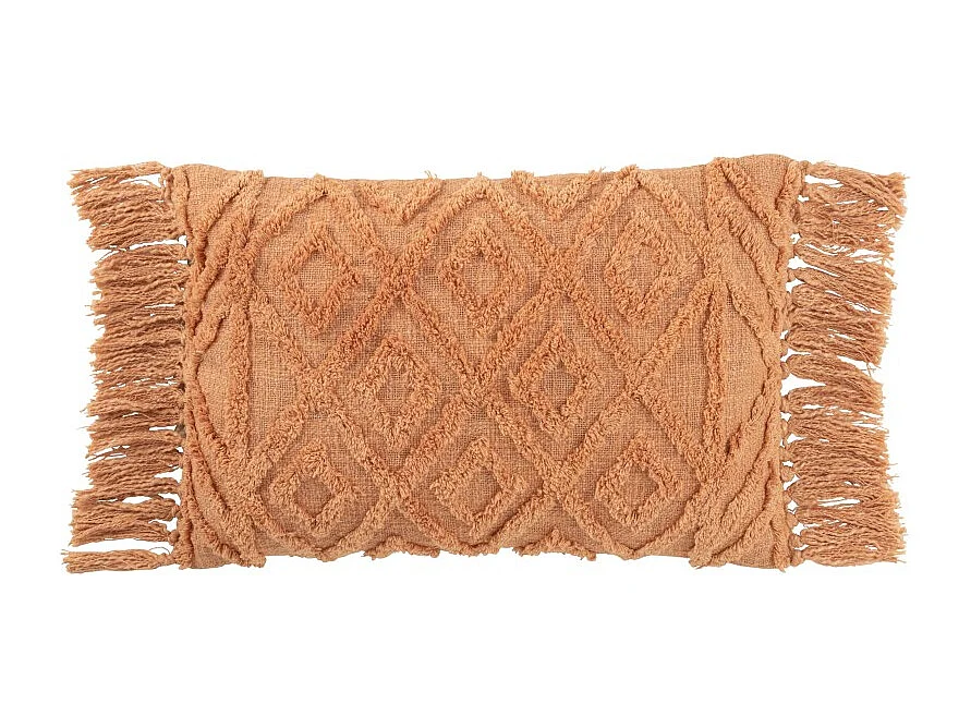 Cojín rectangular con flecos de algodón salmón 78x40x15 cm