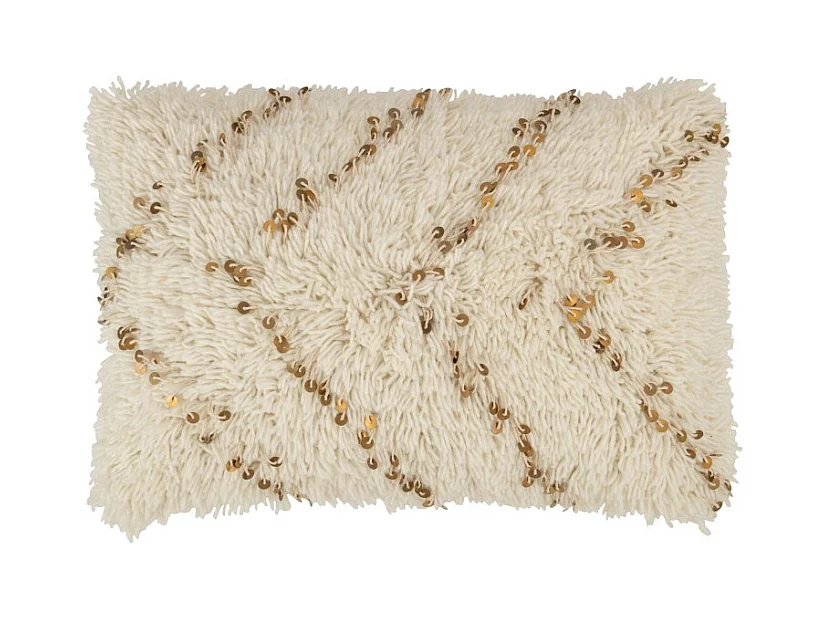 Cojín rectangular de algodón blanco y dorado de 60x40cm