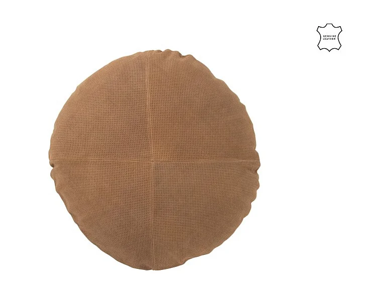 Cojín redondo de cuero marrón de 45x45x8 cm