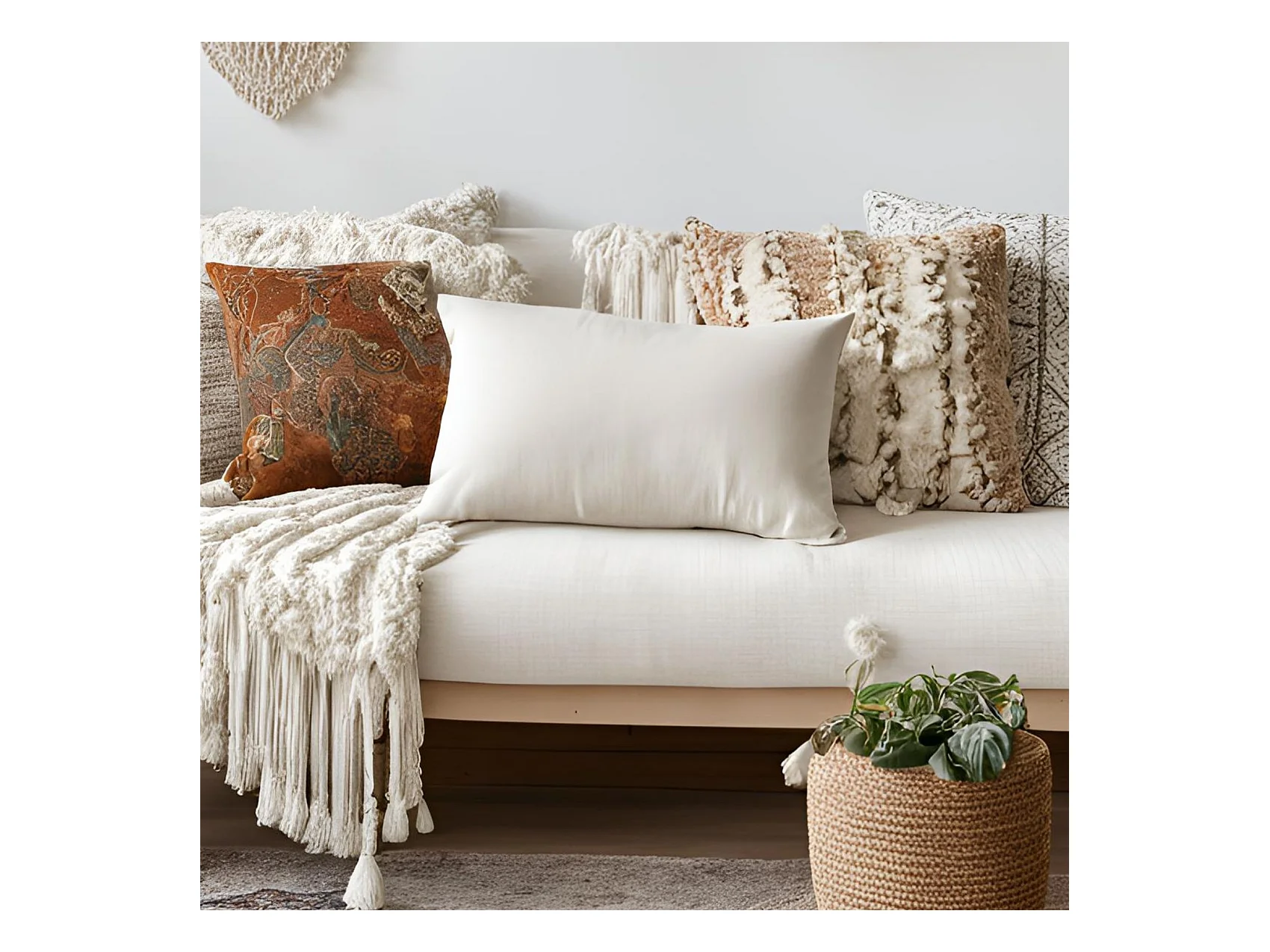 Cojín rectangular con encaje de algodón blanco 51x30cm
