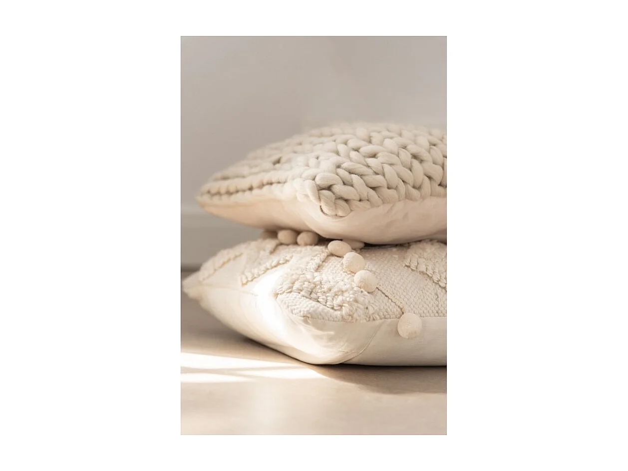 Cojín cuadrado tejido en acrílico crema de 45x45cm