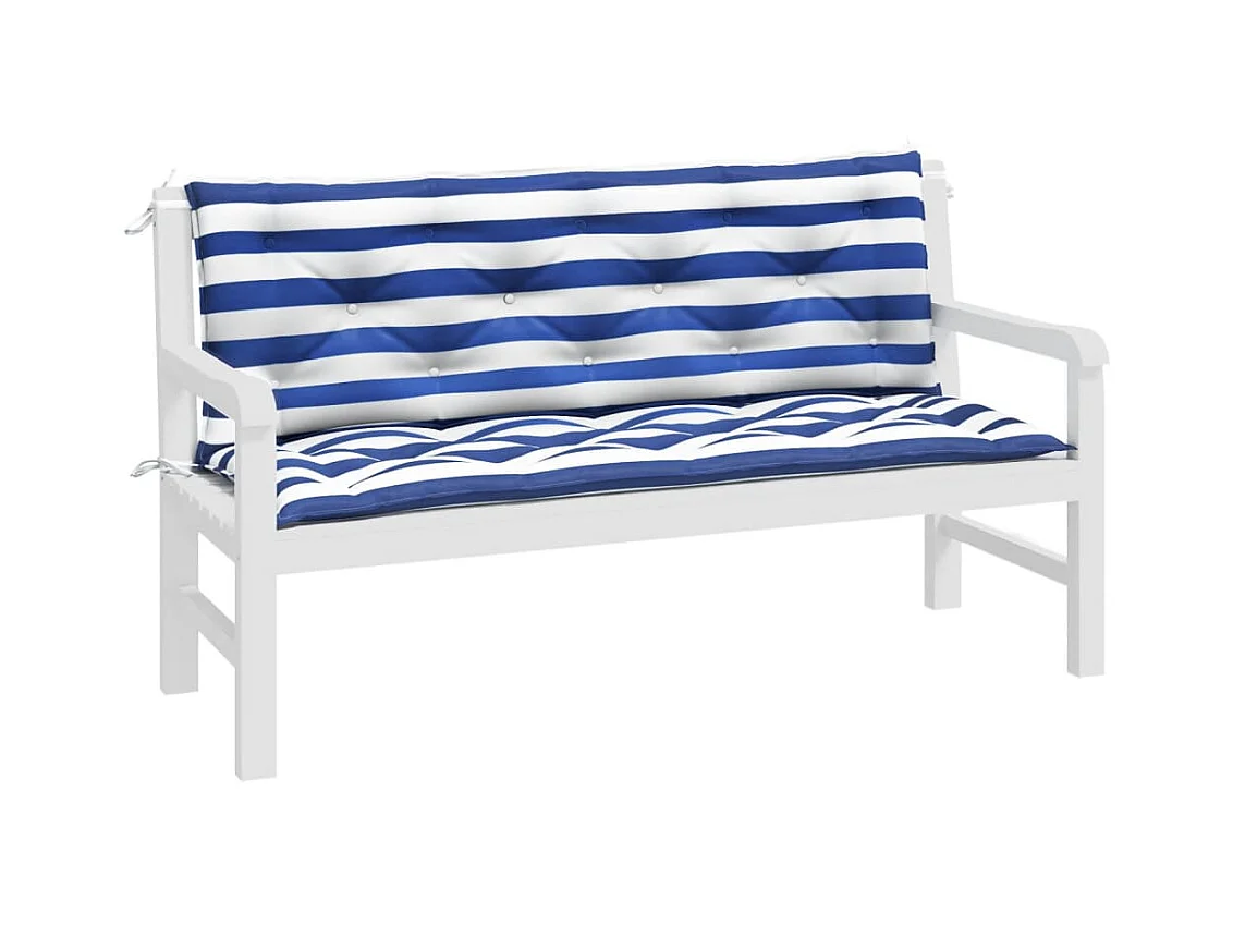 Cojines banco jardín 2 uds tela a rayas azul blanco 150x50x7 cm ES486422