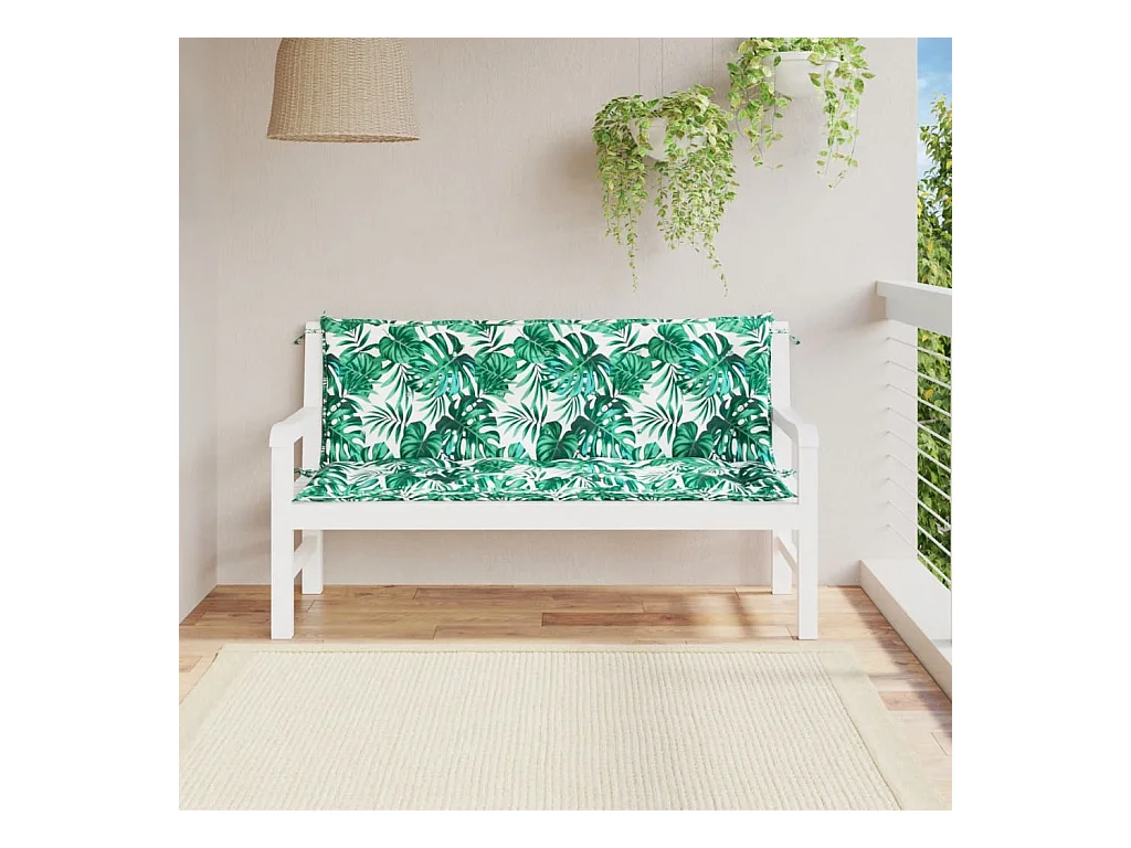Cojines banco jardín 2 uds tela estampado de hojas 150x50x7 cm ES103257
