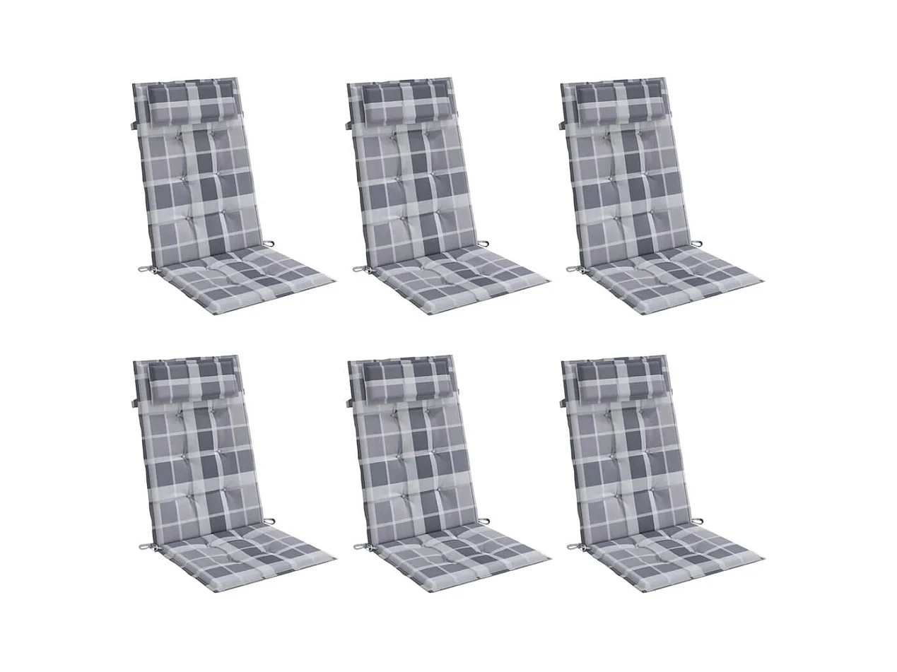Cojines de silla respaldo alto 6 unidades tela Oxford a cuadros gris