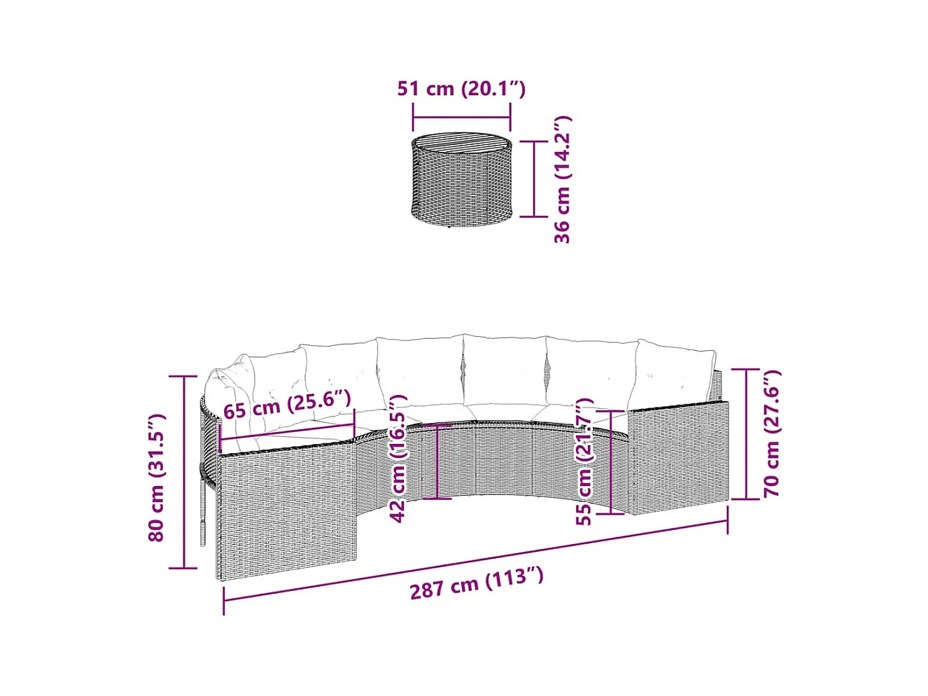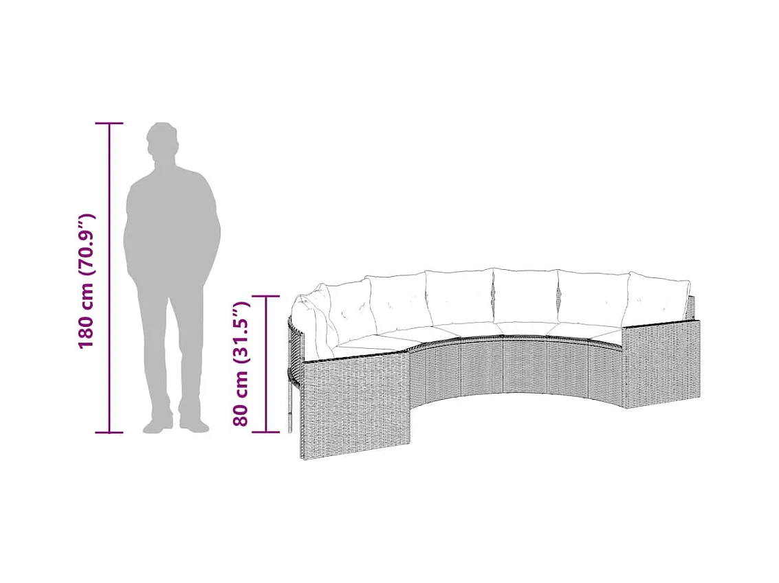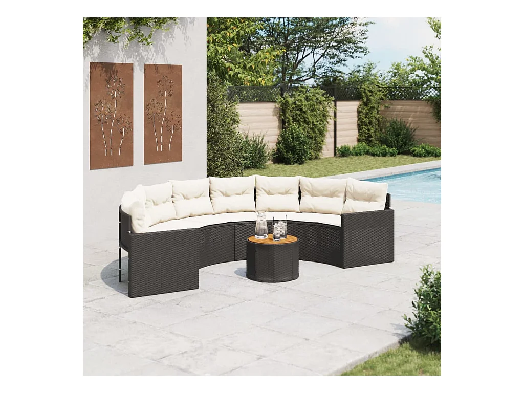 Cojines para mesa de sofá de jardín media caña de resina tejida negra