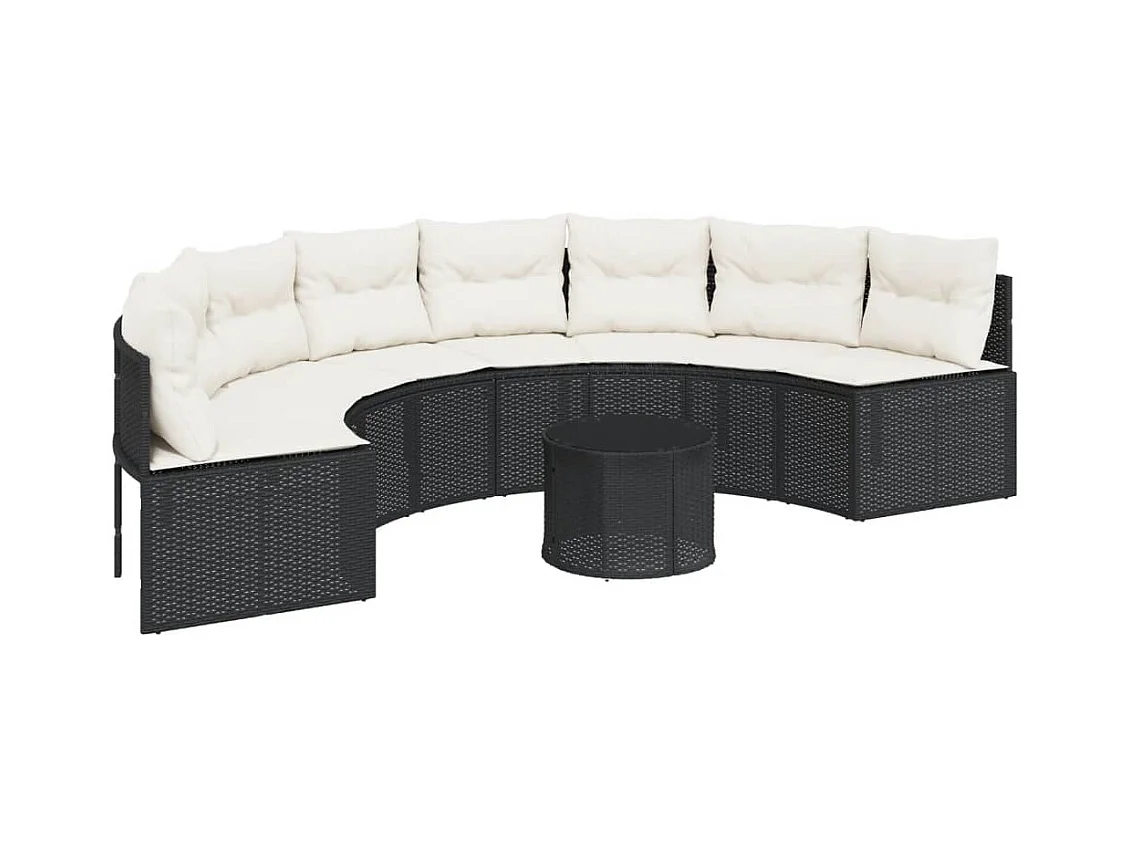 Cojines para mesa de sofá de jardín media caña de resina tejida negra