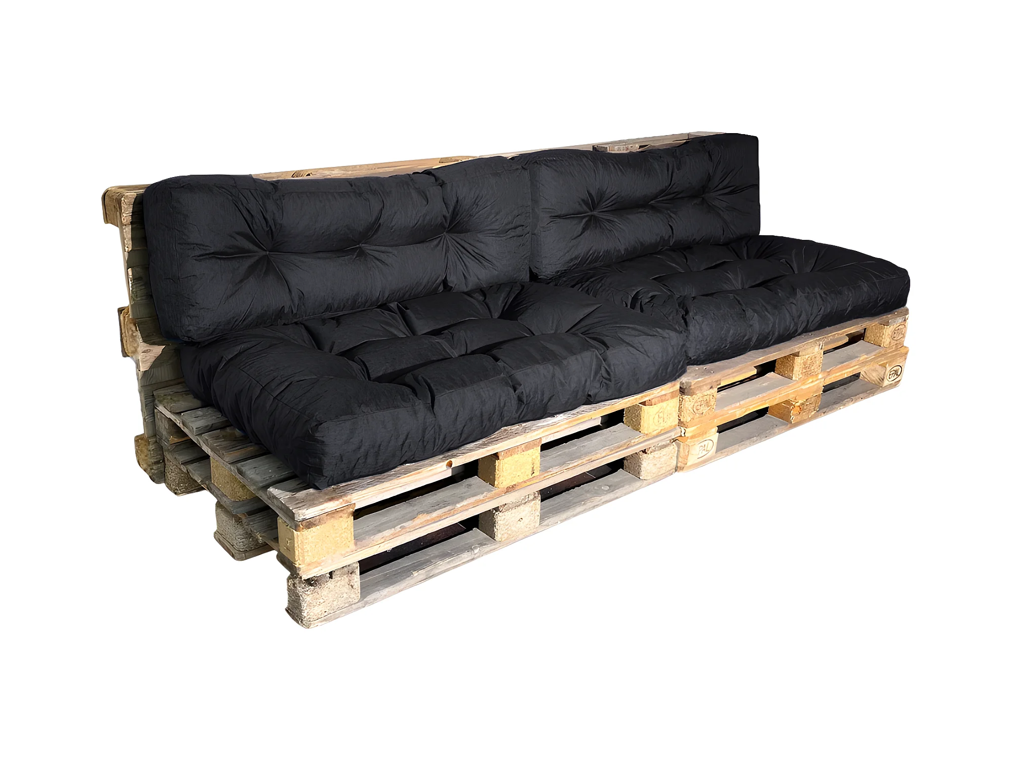 Cojines para palets lote x2 de poliéster 120x80cm/120x40cm negro