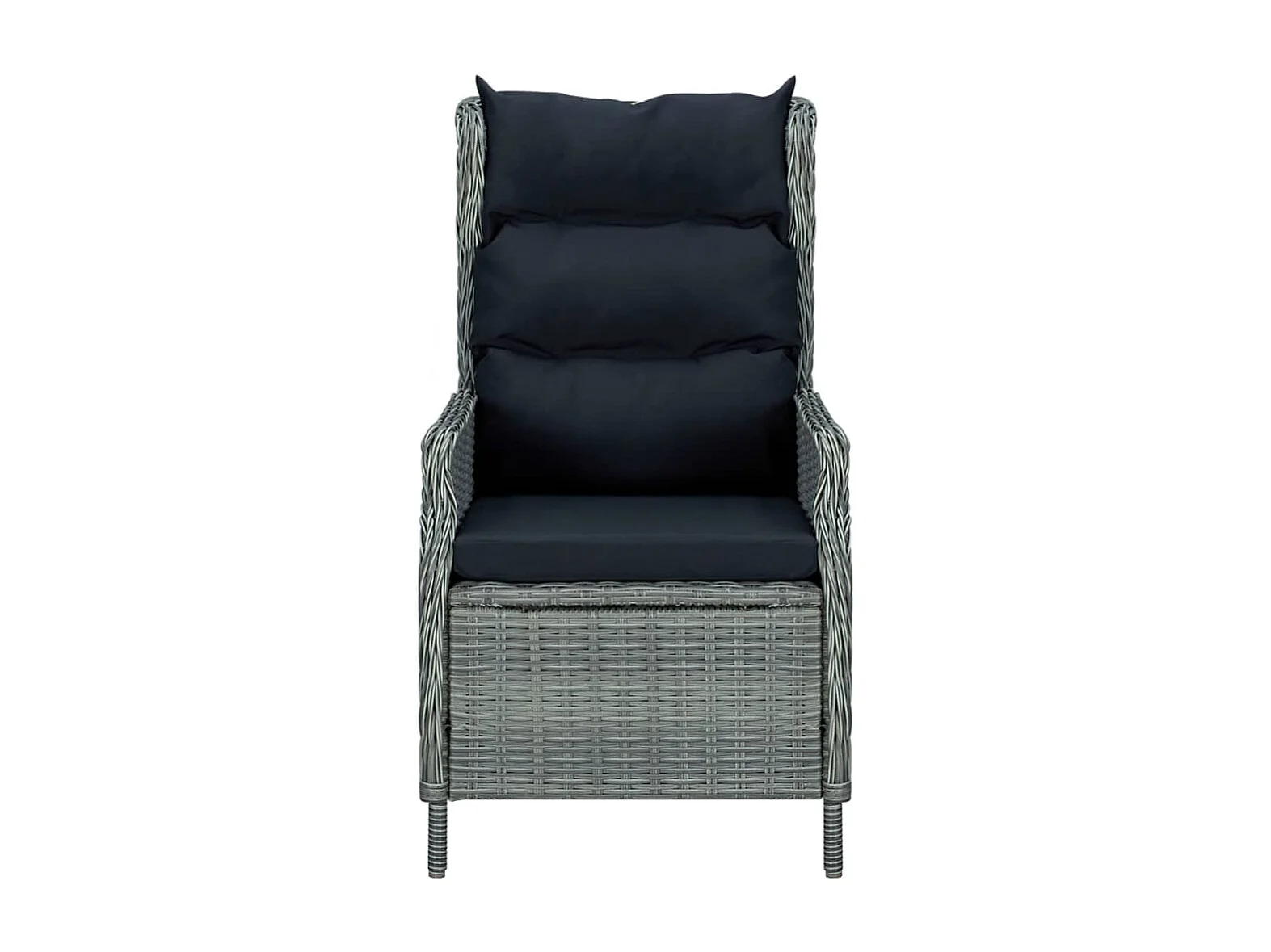 Sillón de jardín reclinable con cojines de resina trenzada gris