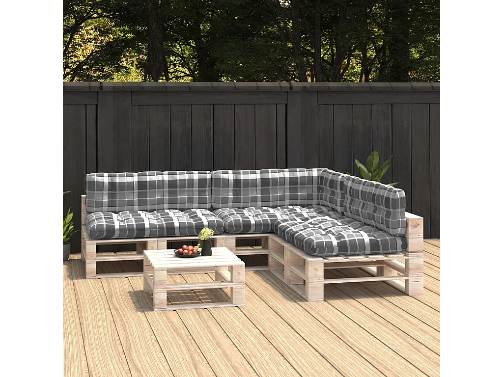 Cojines para sofá de palets 7 unidades estampado a cuadros grises