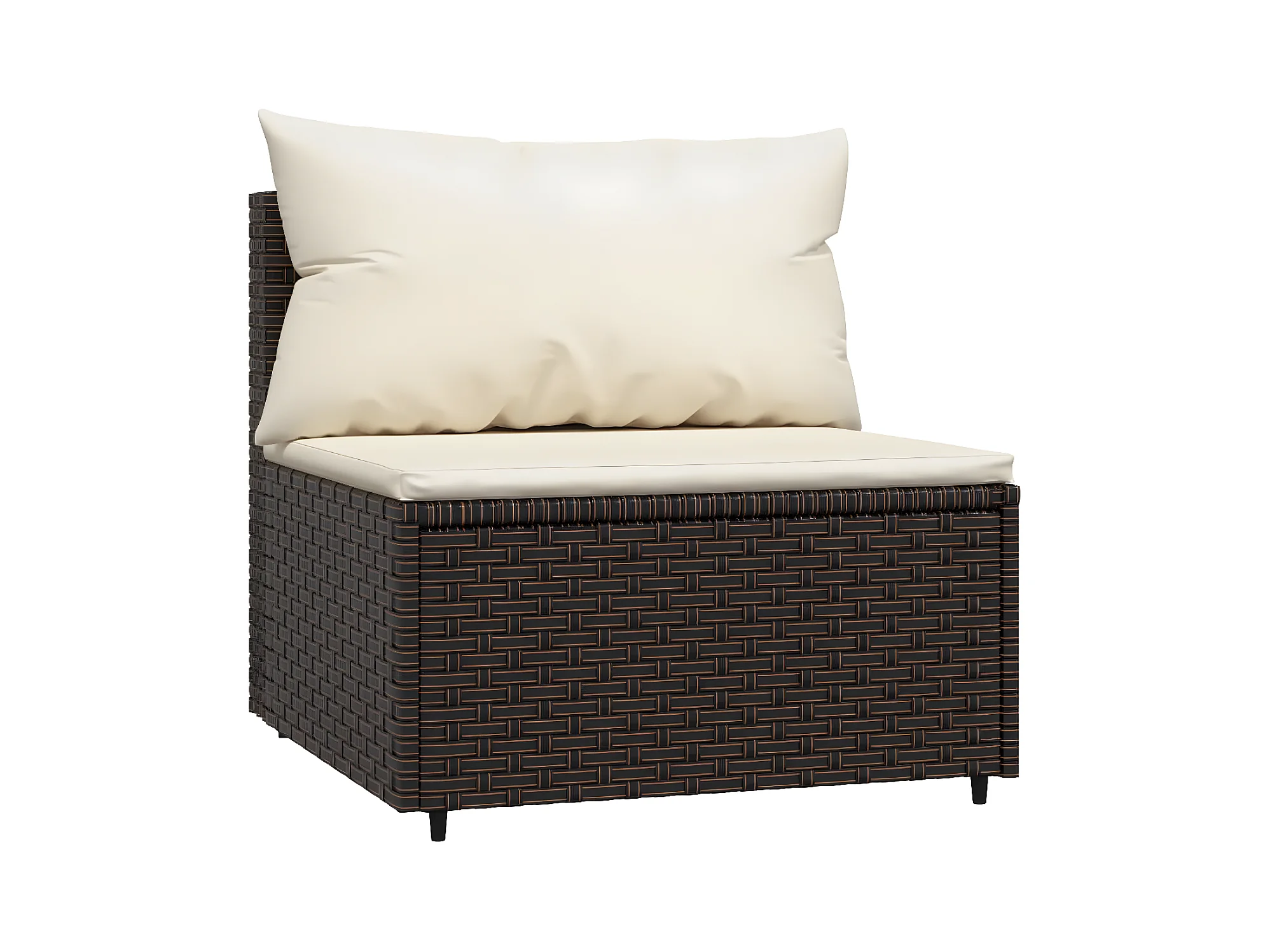 Sofá de jardín central con cojines de resina tejida marrón.