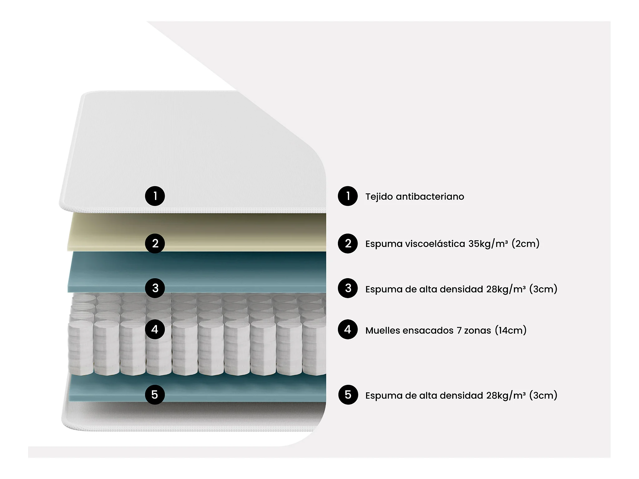 • Muelles ensacados con 7 zonas de soporte