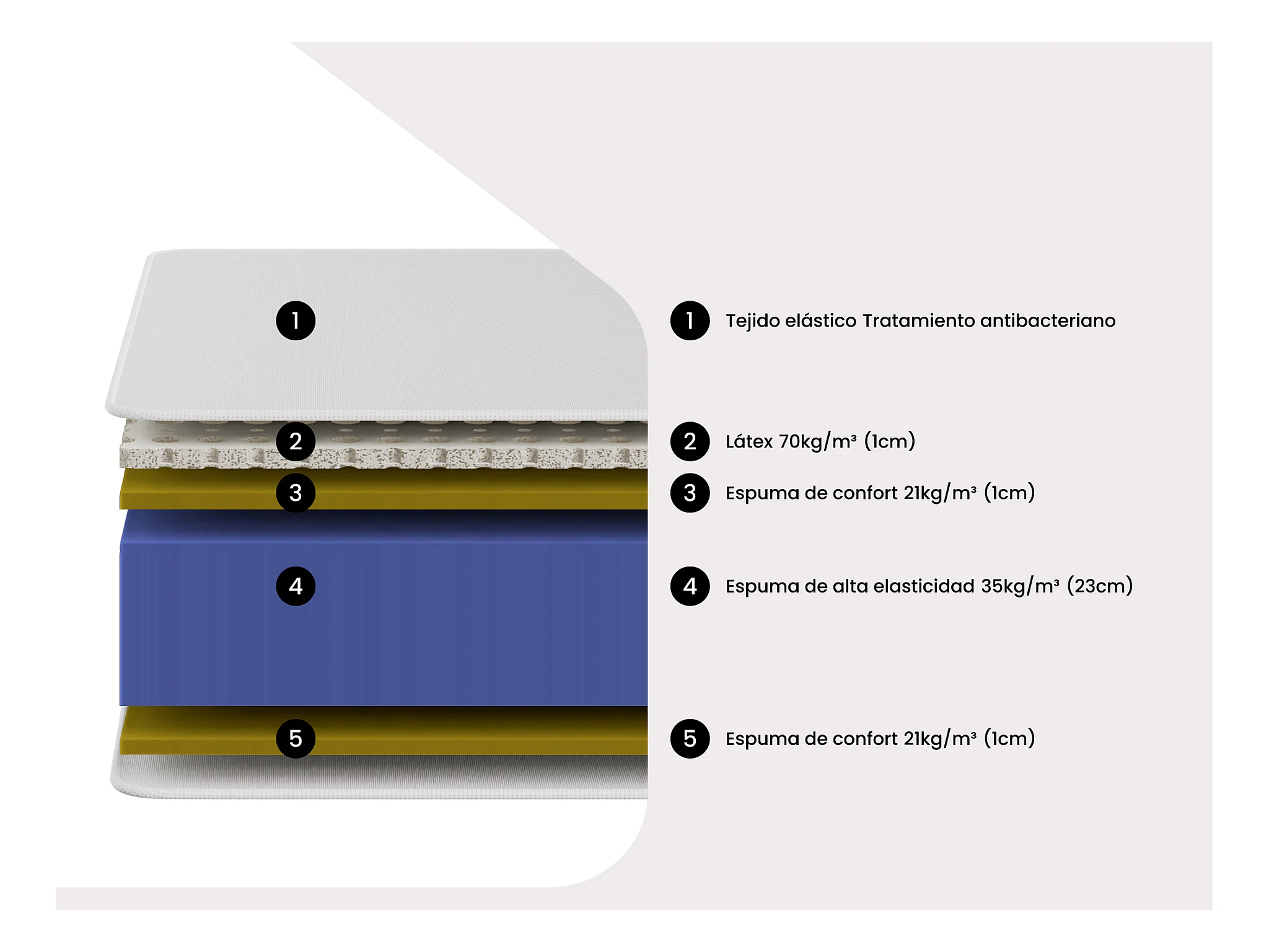 Colchón 160 x 200 cm de espuma HR y acolchado de látex de 30 cm de grosor - MALINO de YSMÉE