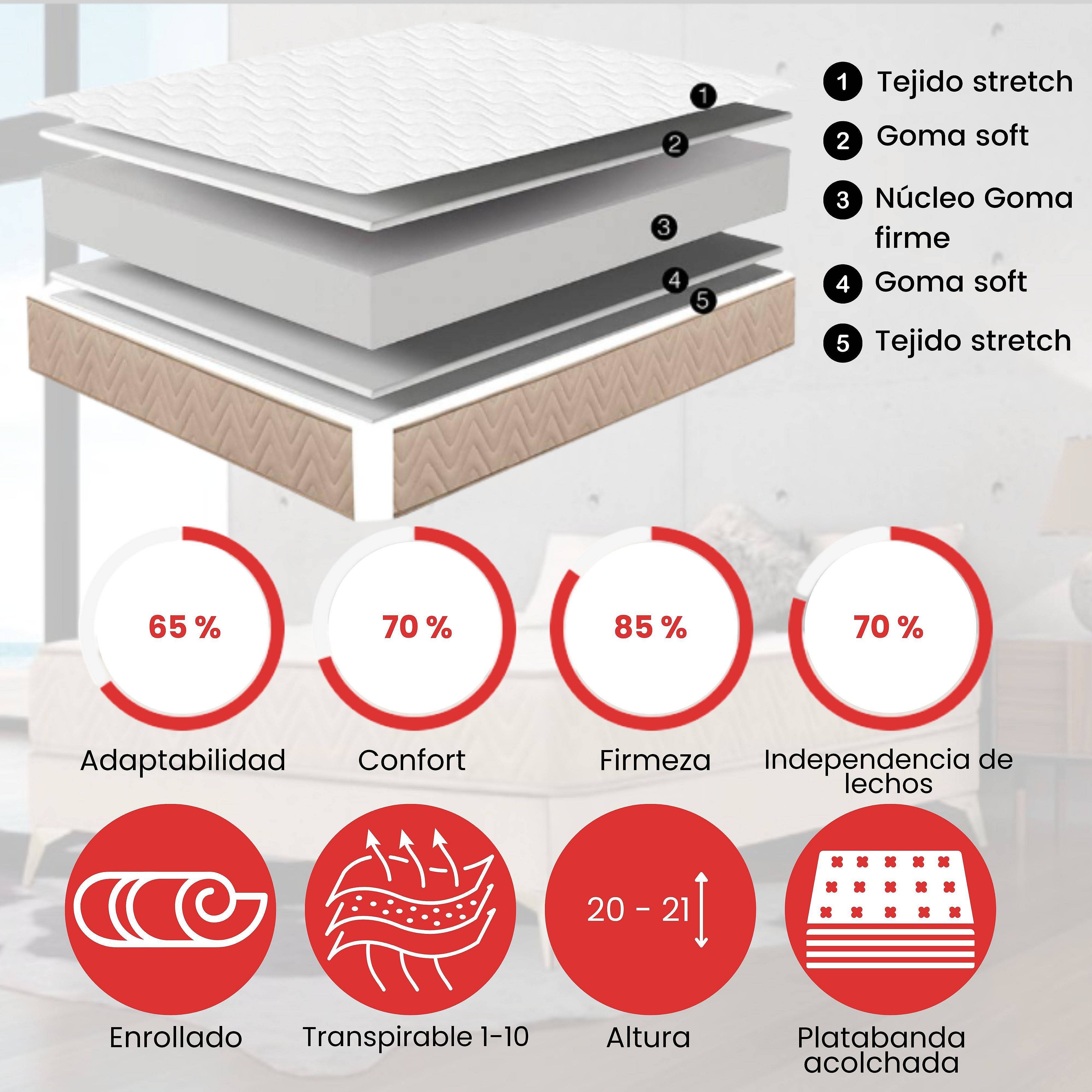 Colchón 90x190 cm viscoelástica Ágata firmeza media Altura 21 cm