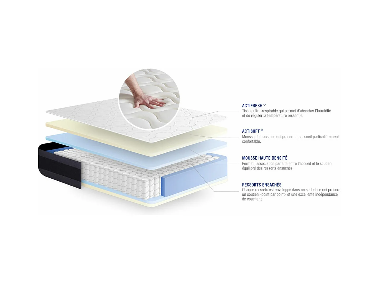 ACTISOM - Colchón de muelles ensacados y Memory Foam 120 x 195 - 1 plaza, 24 cm de grosor - Acogida de Memory Foam, Soporte Firme y Confort Equilibrado con 5 Zonas