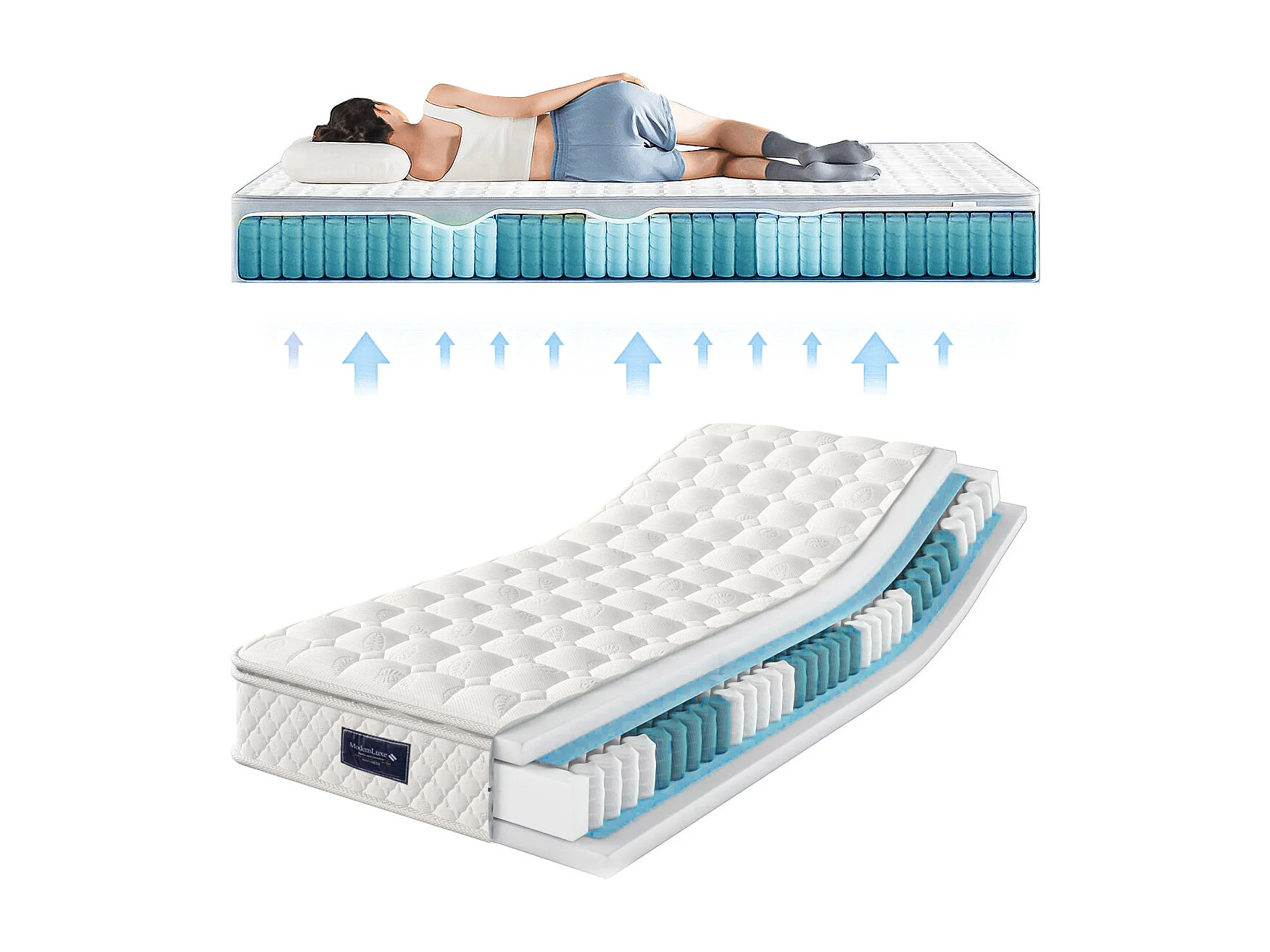 Colchón con núcleo de muelles, espuma fría de 7 zonas, muelles ensacados, 90 x 200 cm, Oeko-Tex, H3, 25 cm de altura