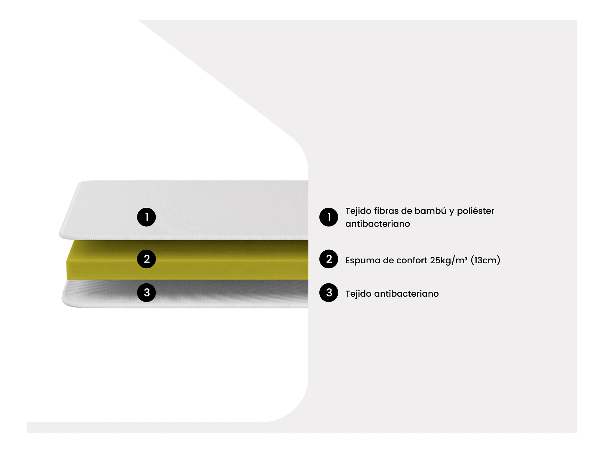 Colchón de 140 x 190 cm espuma y tejido de bambú grosor 15 cm - KANANI de NATUREA
