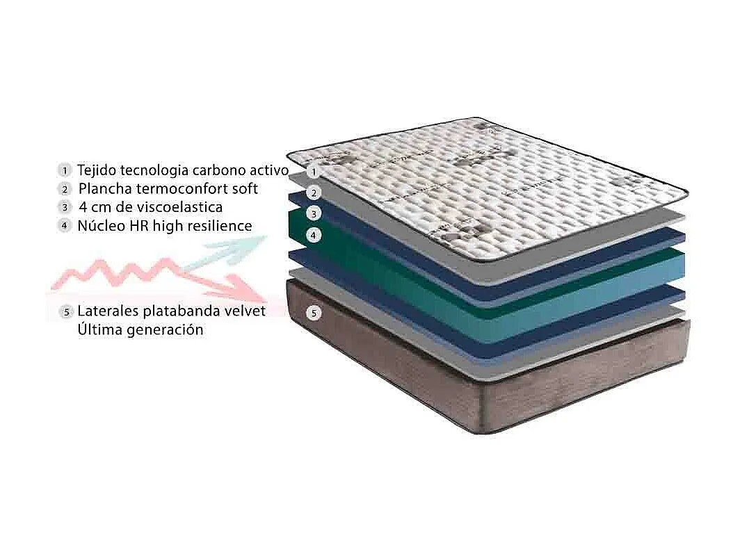 Colchón de 90x190x25 cm con espuma HR y lámina de 4 cm con tejido suave Visco Carbono