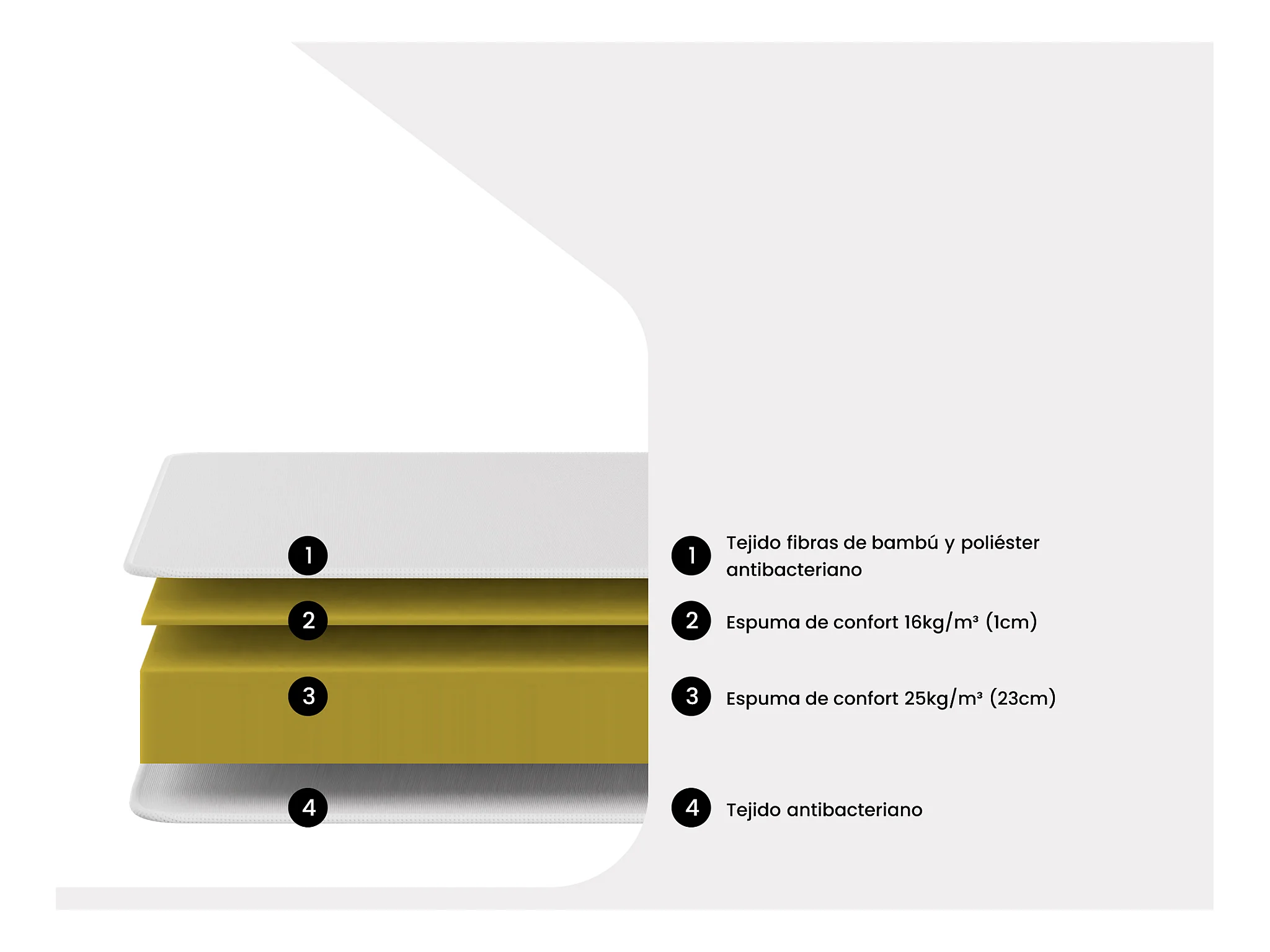 • Cubierta antibacteriana de fibras de bambú y poliéster