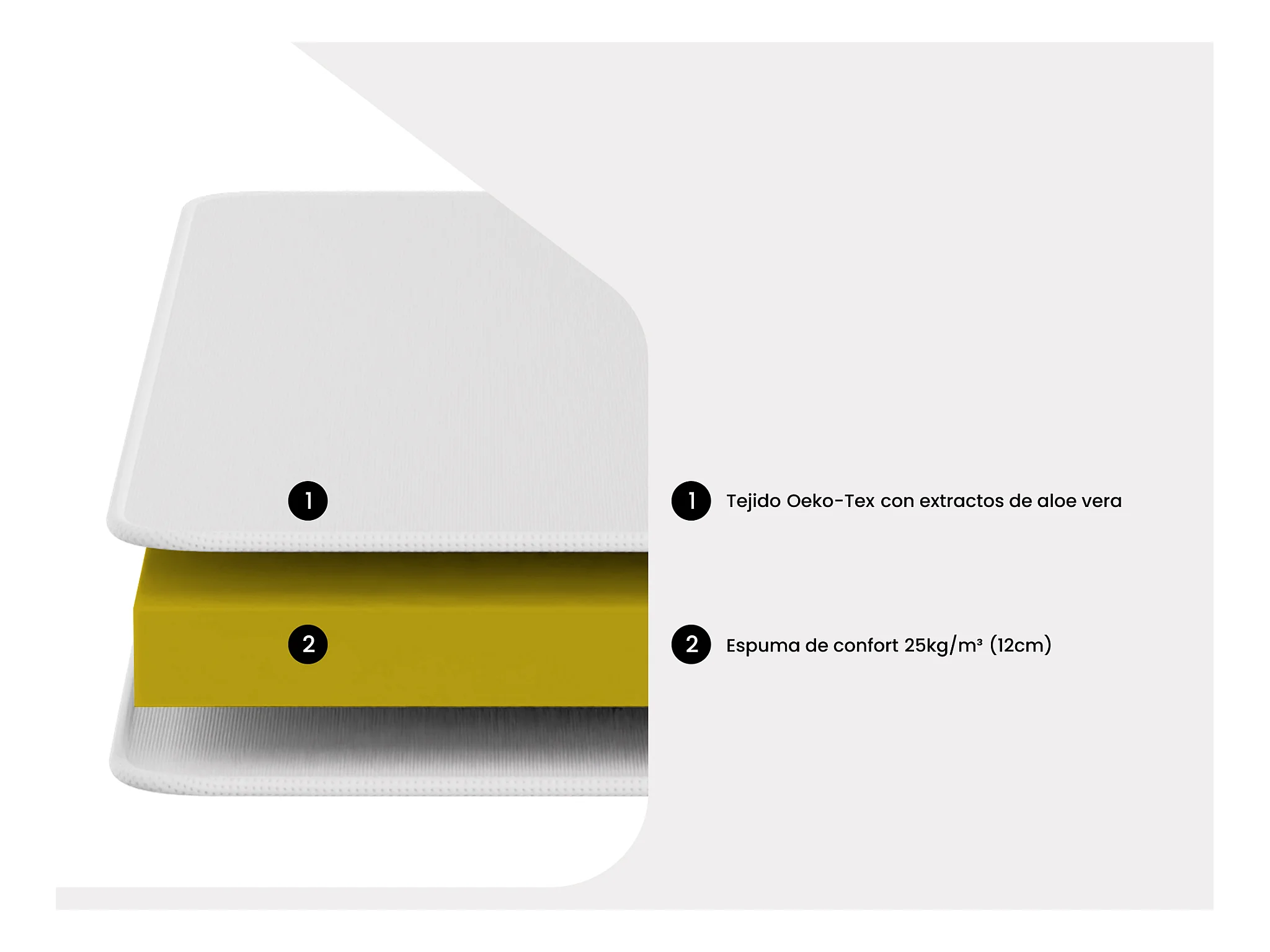 Colchón de espuma para sofá cama acordeón con aloe vera FIESTA de NATUREA 12 cm de grosor - 140x190 cm
