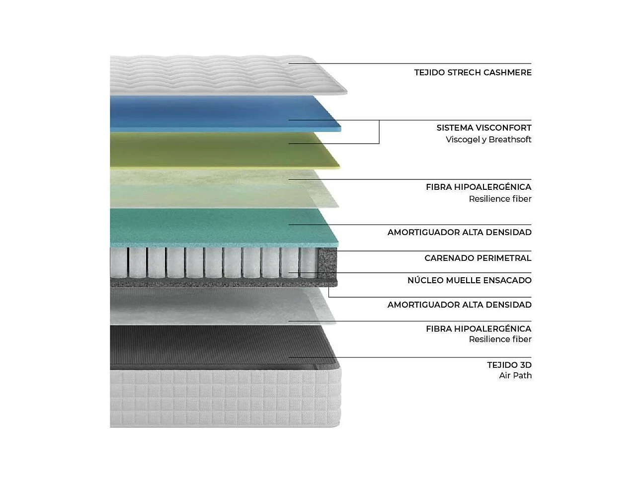 Colchón Viscoelástico 80x180 altura:26cm Talaia Blanco - Nalui