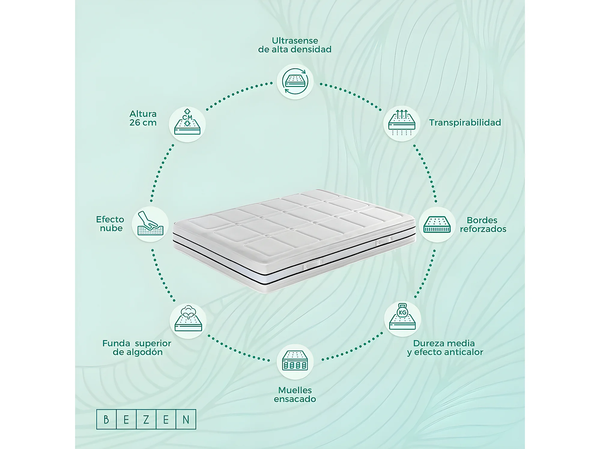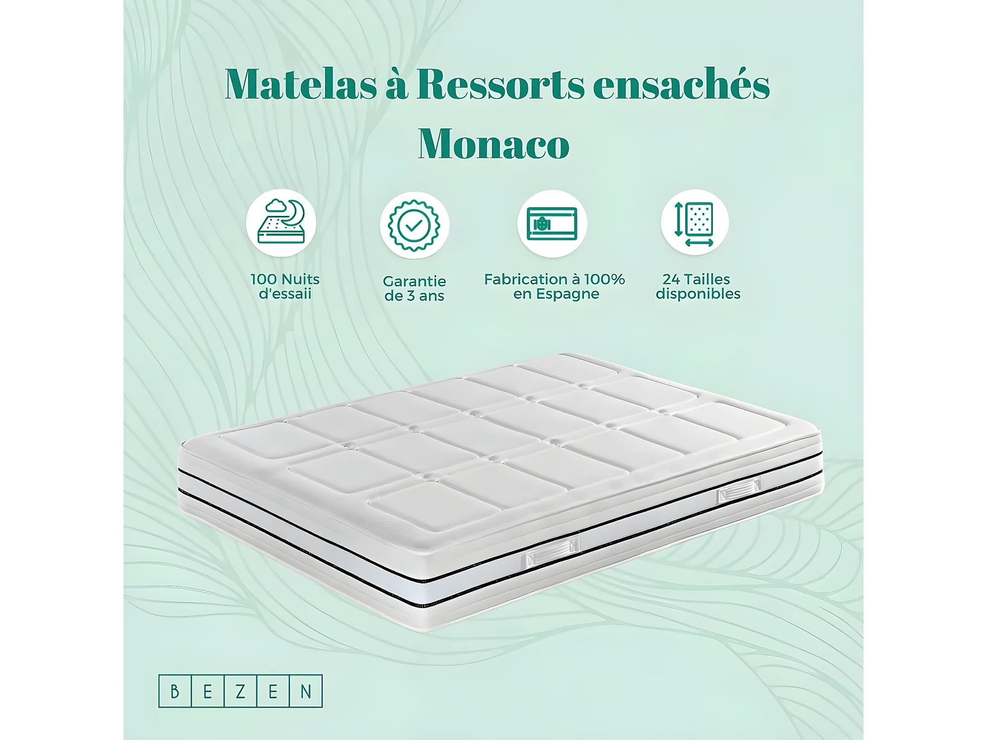 Colchón de Muelles Ensacados Mónaco con viscoelástica|26 cm | Firmeza Media / Alta 120X180 | Efecto Relax | Certificados Sanitized® y Oeko-Tex®