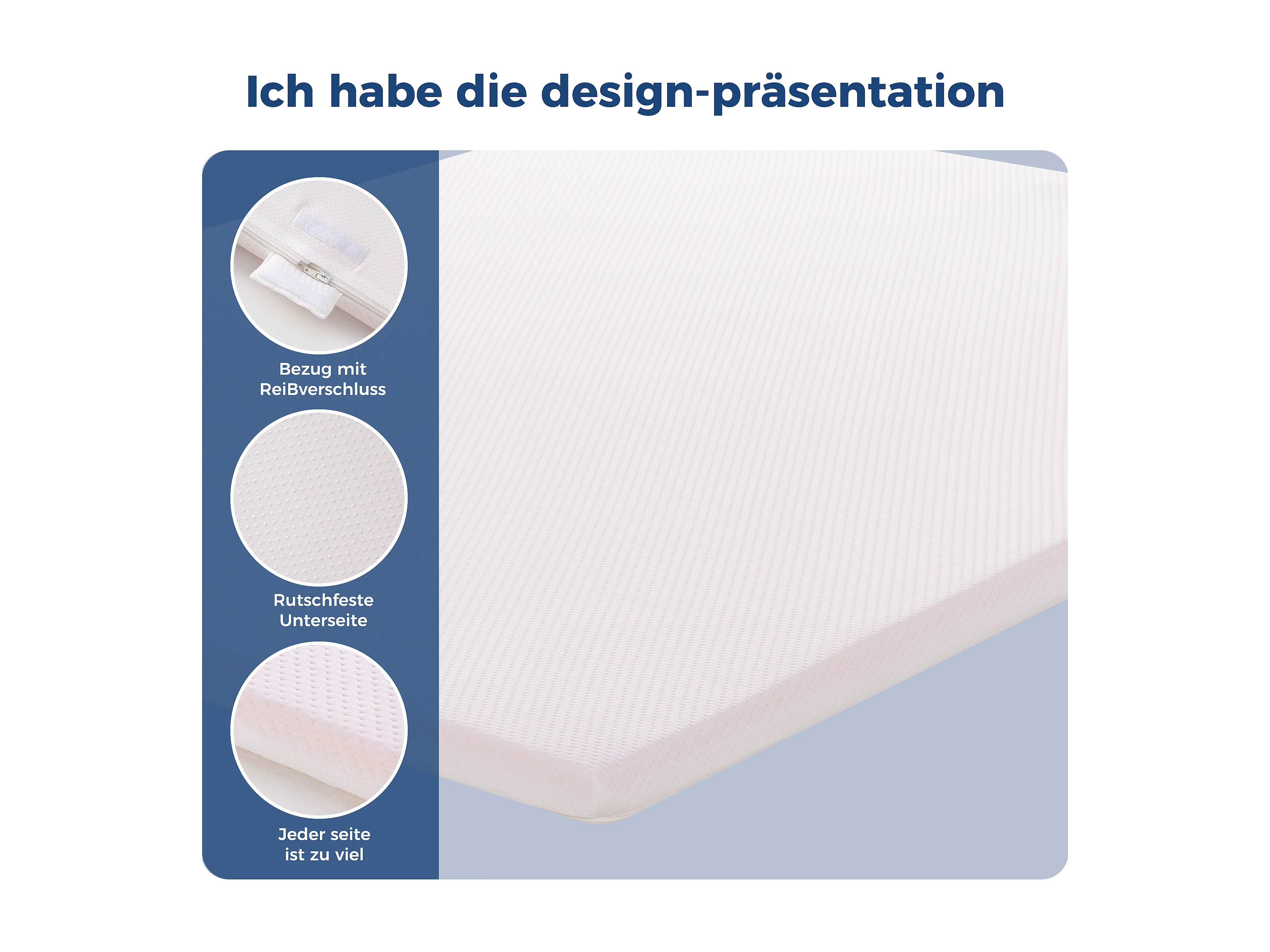 Colchón H3 confortable, soporte medio, certificado Eco-Tex, lavable, alto 5 cm, tamaño 140x200 cm, espuma naranja, colchón blanco.