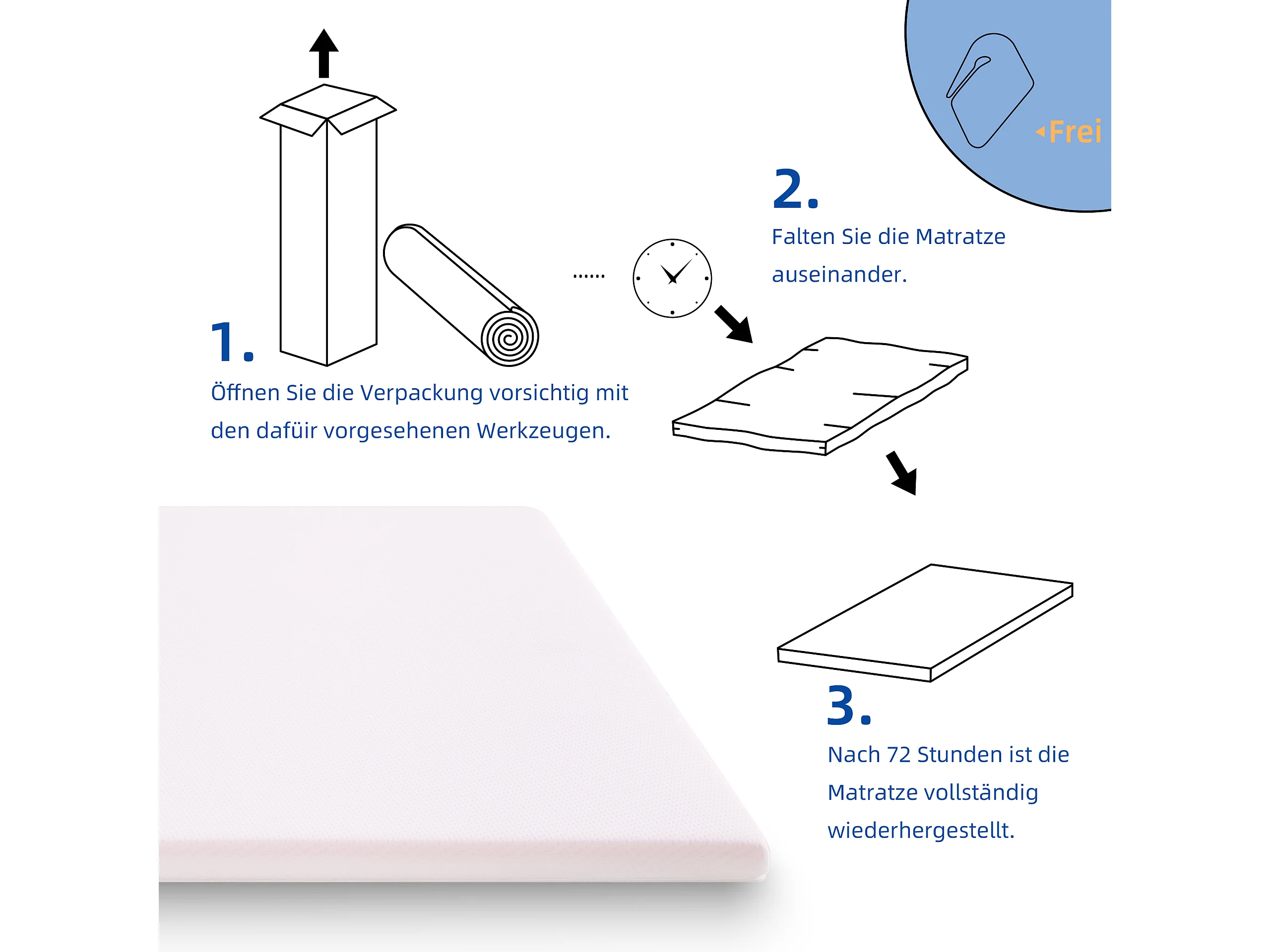 Colchón H3 confortable, soporte medio, certificado Eco-Tex, lavable, alto 5 cm, tamaño 180x200 cm, espuma naranja, colchón blanco.