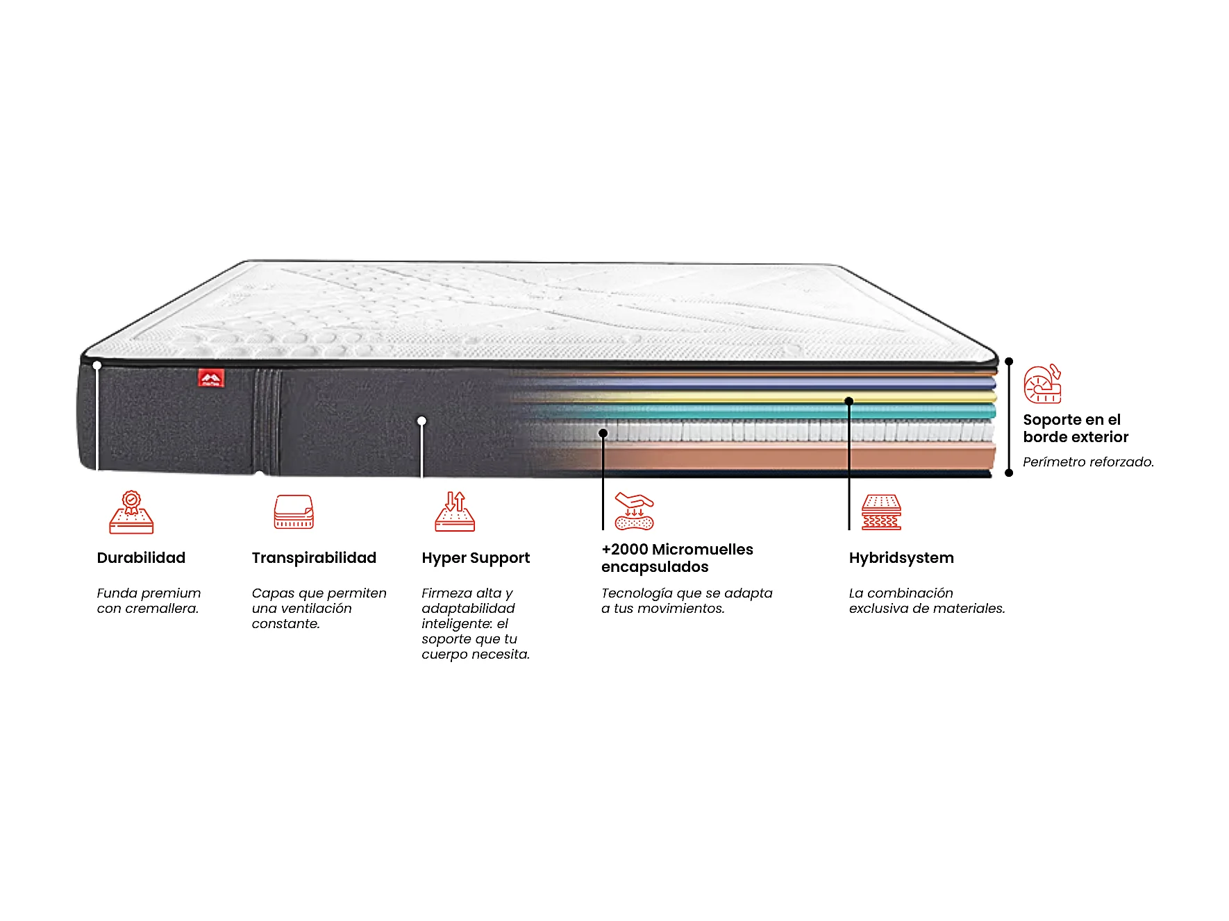 Colchón híbrido con viscoelástica y micromuelles ensacados 160x190