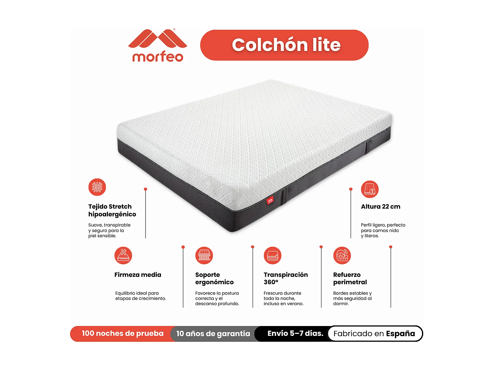 Colchón infantil con viscoelástica Lite 180x200 cm – Ideal para niños